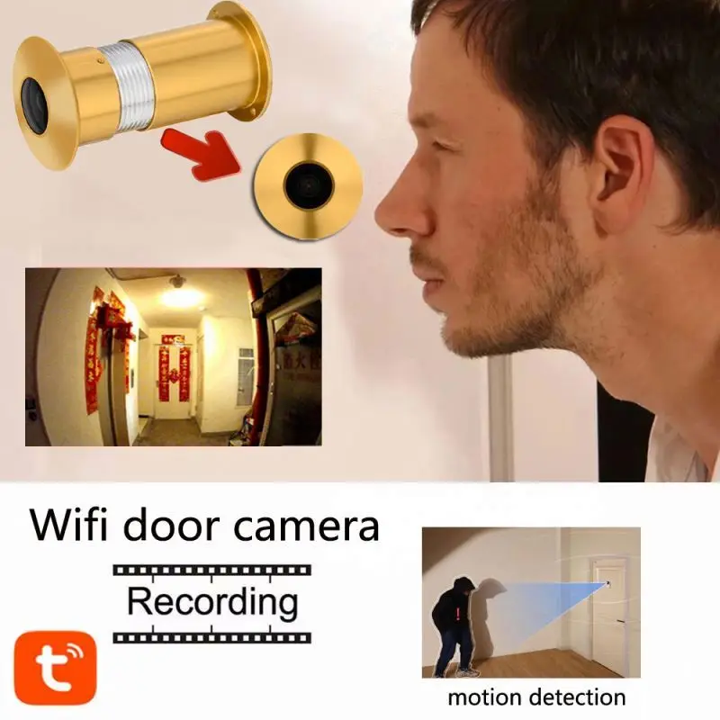 1.66mm Lens in Door Eye Hole Wired IP Camera 1080P 170 Degree Wide Angle FishEye CCTV Security Camera Audio TF Card Slot