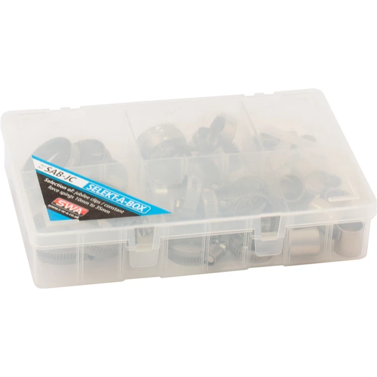 The 10-35mm Selekt-A-Box Hose Clips are the perfect solution for securing hoses in a variety of applications. These durable and reliable clips are made from high-quality steel and are available in a variety of sizes to fit a wide range of hoses.The Selekt-A-Box Hose Clips are easy to use and can be installed quickly and easily. Simply slide the clip over the hose and tighten the screw to secure it in place. The clips are also weatherproof and resistant to corrosion, making them ideal for outdoor use.The 10-35mm Selekt-A-Box Hose Clips are a must-have for any DIYer or professional. They are a reliable and affordable way to secure hoses and prevent them from slipping or coming loose. · · · Durable and reliable · · Securely grip hoses · · Prevent hoses from slipping or coming loose · · Weatherproof and resistant to corrosion · · Removable center pin · · Secure fit · · Adjustable range of 10-35mm · · Ideal for a variety of applications, including:Securing hoses