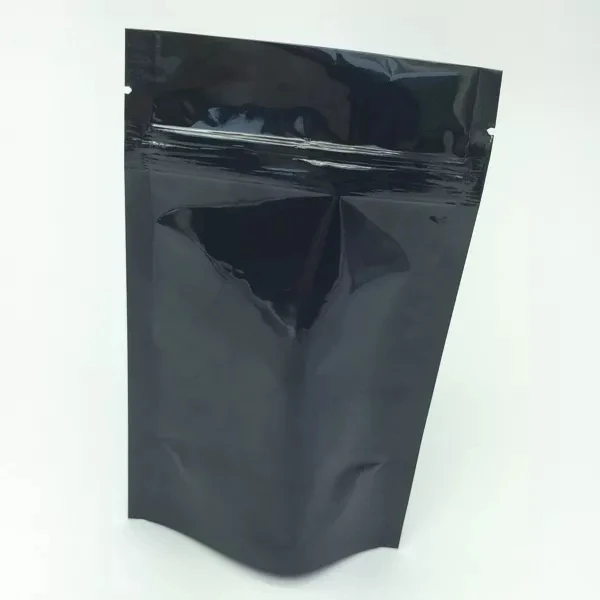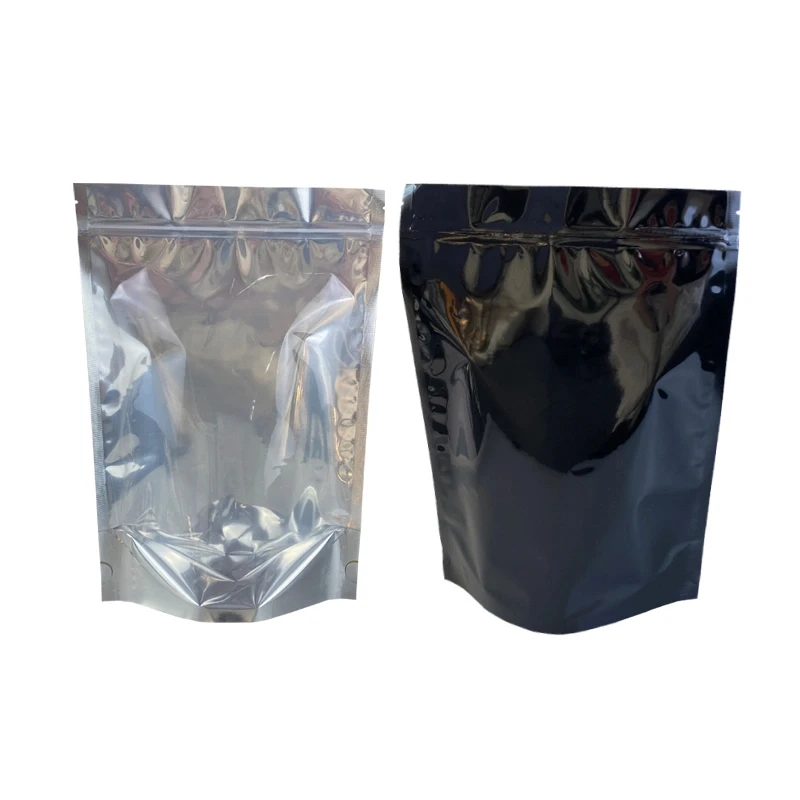 100 Pcs Transparent Zip Lock Stand-Up Mylar Bags Stock 1 Pack Glossy Black Foil Pouch Clear Front Side Plastic Food Packaging