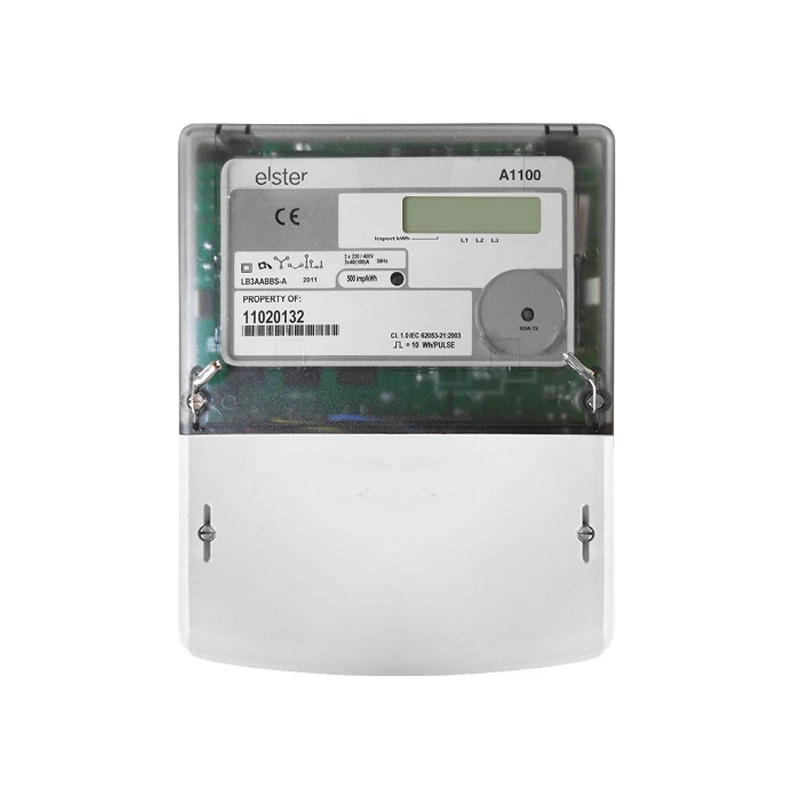 The use of innovative metering technology provides cost-effective metering that is highly secure and maintains a high degree of accuracy over its full operating range. The A1100 meter is suitable for direct connected or CT operated domestic, commercial and light industrial polyphase applications. · · · Depth : 50mm / Height : 221mm / Width : 174mm / Weight : 860g · · Accuracy – Class 1 · · Ofgem Approved · · Cost effective · · 100A Direct connected · · 3 phase 4 wire, or 3 phase 3 wire (upon request) · · Pulsed output · · 12kV Isolation · · Large figure display (9.8mm) · · Extensive security data