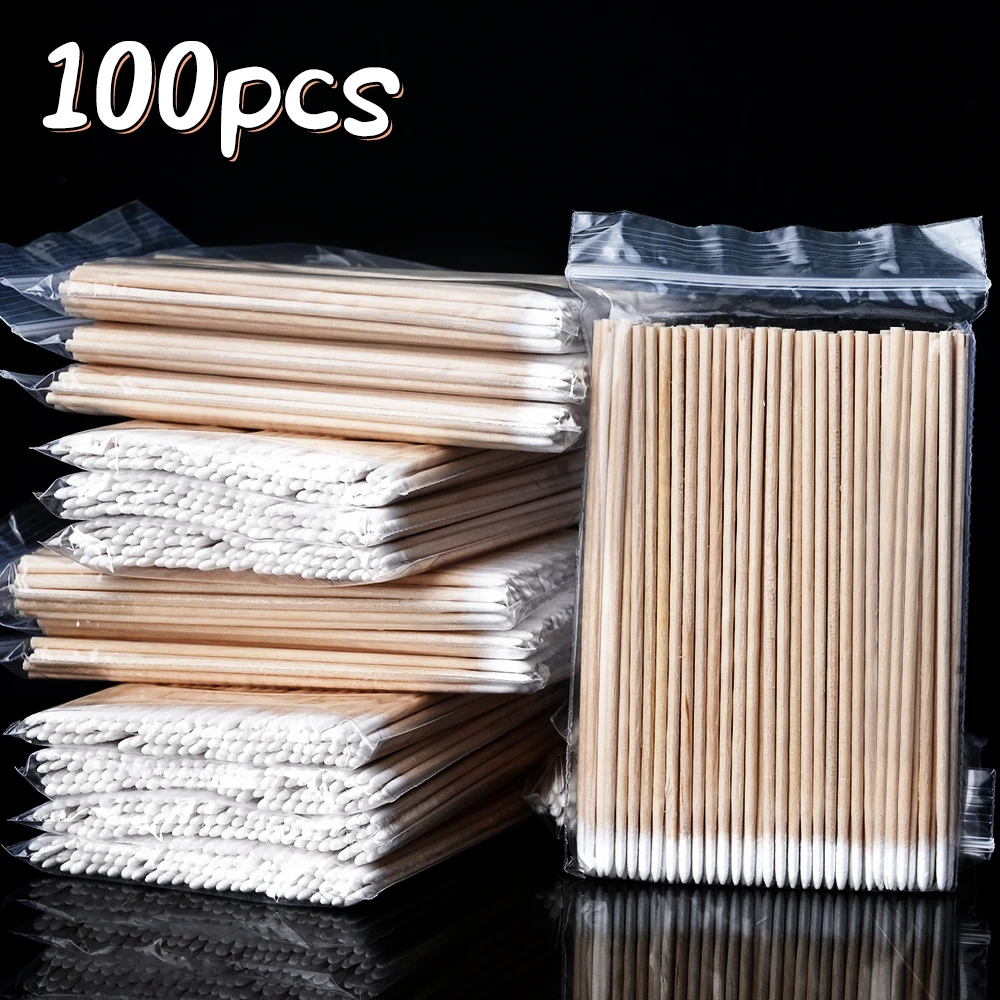 100Pcs Cotton Swab with Wood Handle Small Pointed Tip Head for Eyebrow Tattoo Beauty Make-up Nail Wooden Sticks 10cm