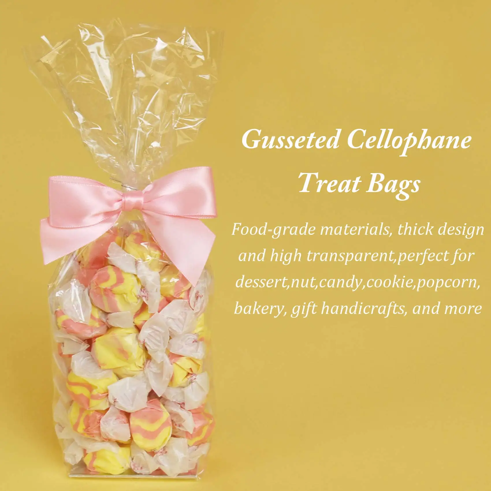 100pcs Gusseted Flat Bottom BOPP Moisture-Proof Cellophane Packaging Bread Snack Food Candy Bag with Paper Insert Stock 1pack Pack of 100