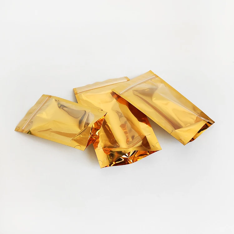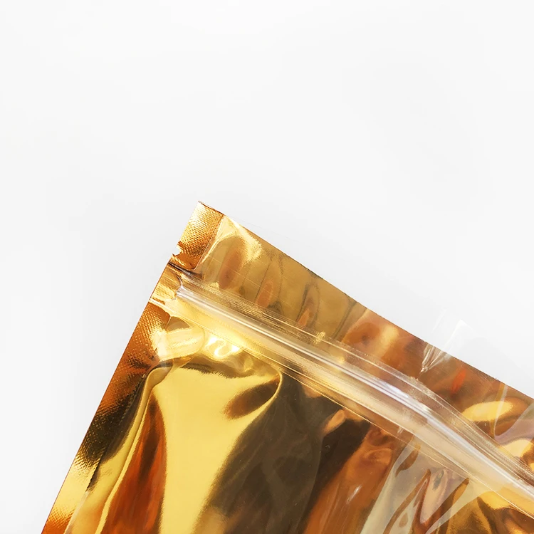 12x20cm Plain Mylay Bag for Dried Food Snack Storage Transparent Front Gold Back Mylar Pouch With Zipper