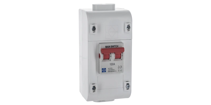 Provides for electrical isolation between the DNO kWh meter and consumer unit or distribution board. The isolation switch permits the supply to the installation to be interrupted without withdrawing the DNO cut out fuse. Available as either an empty enclosure or with integrated main switch. Manufactured from durable ABS material, the insulated enclosure features two separate interlocking covers, permitting the installation and separate security sealing of supply and load conductors. Supplied complete with cable entry plugs to maintain ingress protection when DNO service head and meter are installed prior to consumer unit installation. · · · Electricity Isolator Switch · · Available in 2 module enclosure complete with 100A DP Main Switch, or in 4 module enclosure complete with 100A 4P Main Switch. · · Designed for use with 16mm2 & 25mm2 double insulated meter tails type 6181Y