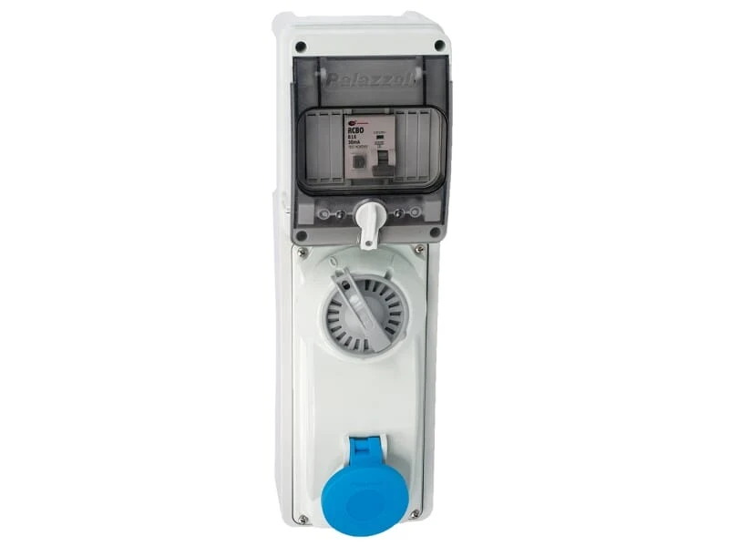 Single, Double and 4 Ways Socket Outlet – with & without Meter options. Circuit Breaker Access Window & Pad lockable. IEC60309 switched interlocked socket outlets. Flexible enclosure design allows either 16A or 32A switched interlocked socket to be interchanged on the same fixing flange and wire harness. Allows for upgrade of additional switched interlocked socket easily and quickly at later date. Weatherproof IP66/IP67. High resistance to UV rays and chemical agents. Smooth undrilled walls allow custom cable entry position · · · IEC60309 switched interlocked socket outlets · · Flexible enclosure design allows either 16A or 32A switched interlocked socket to be interchanged on the same fixing flange and wire harness · · Allows for upgrade of additional switched interlocked socket easily and quickly at later date · · Surface Mounting · · Colour: Grey · · Rated current 16A · · Rated operating voltage 230V