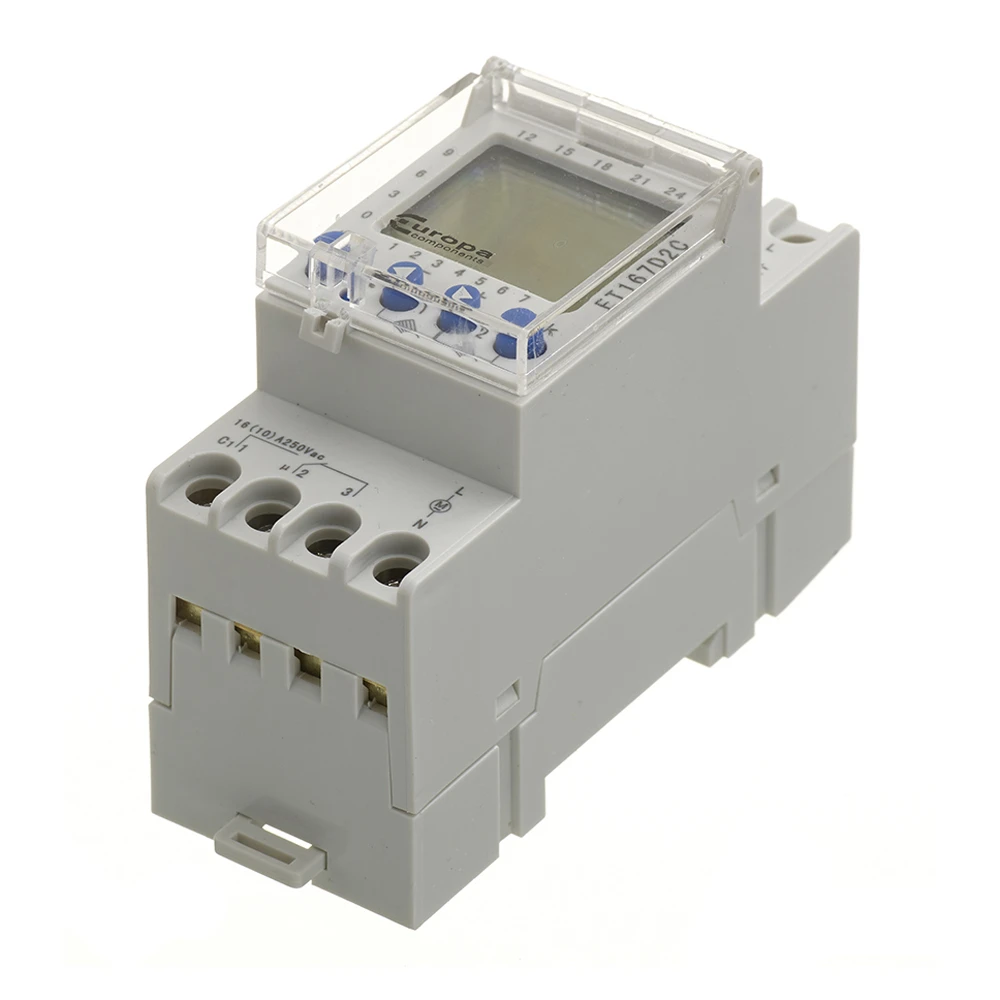2 module 2 channel (2N/O + 2N/C contacts) timer with up to 44 memory settings, 24hr (1 minute) ON/OFF periods can be set for each day of the week, Channels independently programmable, Auto Summer / Winter adjustment, Battery back up, Din Rail mounting · · · Easy to install · · Flexible install options · · Increased accuracy · · Enhanced productivity
