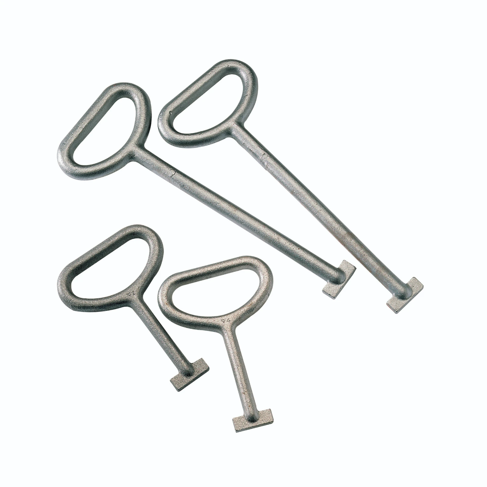 Lifting keys specifically designed to lift manhole covers comes with a oval handle and wedged bottom for it’s lifting purpose. · · · Construction: Cast Iron. Manhole lifting keys, solid cast for superior strength and longevity. · · Made from high-quality metal: The keys are made from strong, durable metal that can withstand repeated use. · · Fits a variety of manhole covers: The keys are designed to fit a variety of manhole covers, making them a versatile tool. · · Easy to use: The keys are easy to use, even for people with limited strength or mobility. · · Ergonomic design · · Durable and long-lasting · · Sold in pairs
