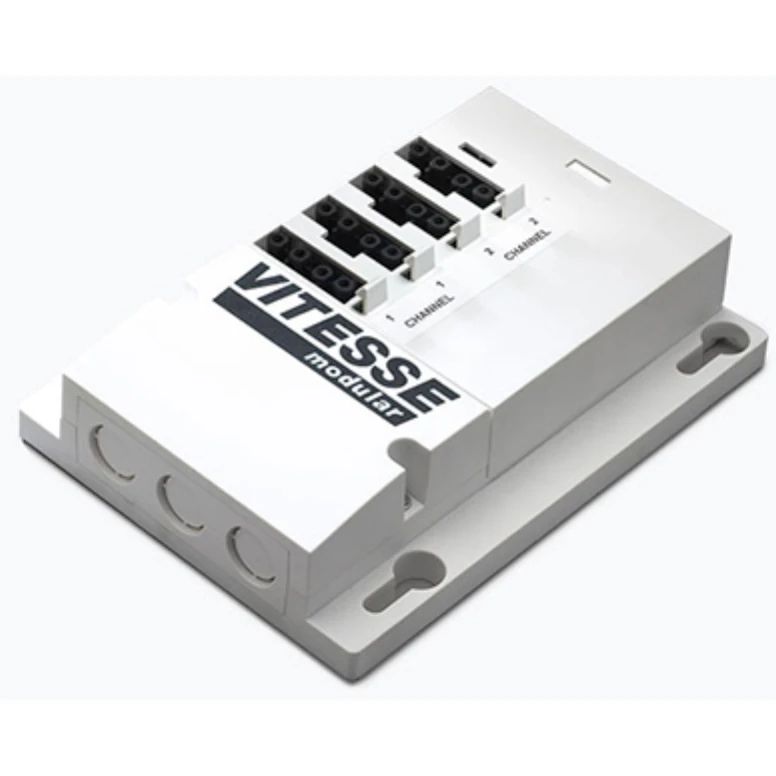 The VITM4-2CH-2S is a two channel, non-dimming distribution box for use in applications that require two independent supplies for switching lighting or lighting and ventilation circuits.For example this product is ideal for installations that have essential and non-essential supplies for lighting circuits and require common switching using presence detectors. · · · The Vitesse modular system is a cost effective method of providing power and control for lighting installations in industrial, commercial and retail buildings · · The system is designed for ease of installation: mains input is connected using the spacious wiring compartment; control inputs and outputs are pluggable using industry standard connectors · · The modular approach allows for between 4 and 16 luminaires to be connected. · · The VITM4-2CH-2S is a two channel, non-dimming distribution box for use in applications that require two independent supplies for switching lighting or lighting and ventilation circuits