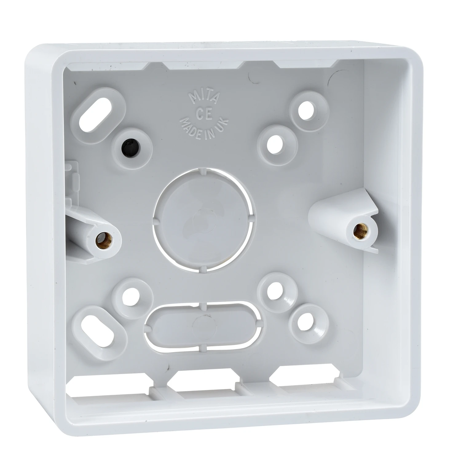 This is a 2 gang mounting box. It has a white finish and is 32mm deep. This has round corners and is suitable for surface mounting. · · · BS EN 50085-1, BS EN 50085-2-1, BS4678 Pt4, BS7671 (IET Regulations). · · Comprehensive choice of profiles to suit your application. · · Wide range of dedicated fittings and boxes for fast, high quality installation. · · Durable uPVC. · · Regarded as the leading cable management solution for many basic installations.