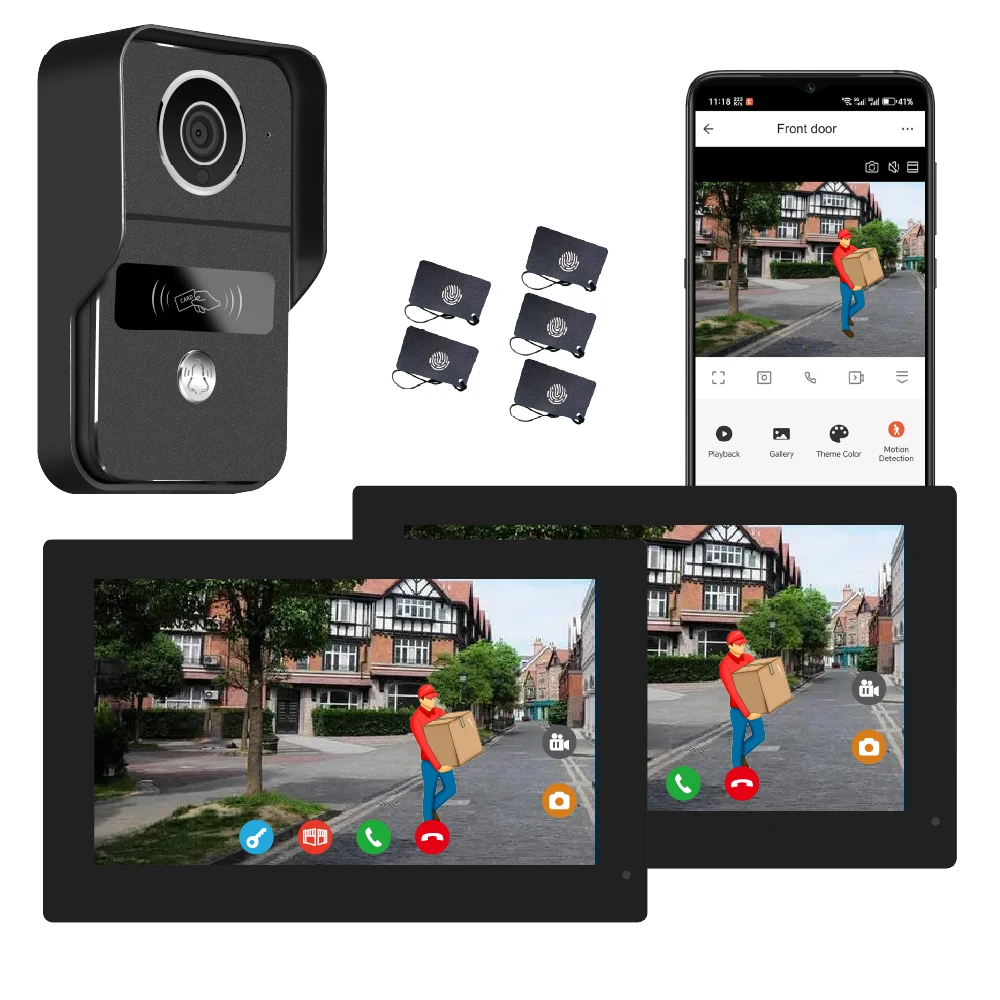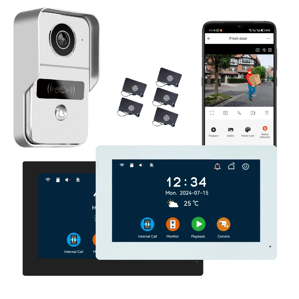 Product Description 7 Inch Tuya Video Doorbell WiFi Outdoor Door Bell Waterproof IP65 Intercom Smart Home Door Phone Camera 2-Wire Digital Video Intercom Kit – See, Talk, & Unlock from Anywhere! Bullet Points: ✅ 7″ or 10.1″ IPS Touchscreen – Crystal Clear Video & Easy Control ✅ 2-Wire Setup – No Polarity, Easy DIY Installation in Minutes! ✅ Smart Human Detection – Auto-Record Videos/Photos When Someone Approaches ✅ Free App Control – Answer Calls & Unlock Doors from Your Phone, Anywhere! ✅ RFID & Smart Badges – Keyless Entry for Your Family ✅ Connect up to 24 Cameras –Expand Your Home Security System ✅ Weatherproof & Durable – IP54 Rated, Works from -30°C to +70°C Why Choose Our Video Intercom Kit? uD83DuDD39 Easy Installation & No Polarity Forget complicated wiring! With just 2 wires and no polarity issues, you can install this system yourself – no electrician needed. Save time and money! uD83DuDD39 See & Speak to Visitors in HD Whether it’s a delivery person, a guest, or a stranger, you’ll see them clearly on a 7″ IPS touchscreen. Day or night, the wide-angle camera and IR LEDs ensure a sharp image. uD83DuDD39 Smart Human Detection & Recording The intercom panel detects people automatically and can record video or take photos – so you always know who came by. Set motion zones to avoid false alerts. uD83DuDD39Control Everything from Your Phone Download the Tuya Smart / Smart Life App and connect your intercom to Wi-Fi. Answer calls from anywhere Unlock the door or gate remotely Share access with up to 20 app users View live footage and playback from your phone uD83DuDD39Keyless Entry with RFID Badges Includes 5 RFID badges for keyless access. Just tap to unlock – perfect for family members or trusted visitors. uD83DuDD39 Expandable & Compatible Add up to 24 ONVIF or RTSP cameras to the same system. Perfect for growing your smart home security network. Specification Parameter Specification Monitor Screen 7-inch IPS Touchscreen Camera Resolution 2 Megapixels (CMOS Color Sensor) Video Quality 1024 x 600 px, H.264 Decoding Connectivity 2.4 GHz Wi-Fi (IEEE 8111 b/g/n) Power Supply 24V, 1A (Shared for 1 panel & 2 monitors) Power Consumption Monitor: 3.5W App Support Tuya Smart / Smart Life (Up to 20 users) Smart Features Human Detection, Motion Zones, Auto Photo/Video Recording Access Control RFID Badges (5 included, supports up to 100), Remote App Unlock Wiring Simple 2-Wire Setup (No Polarity) Weatherproof IP54 Rated (Suitable for Outdoor Use) Operating Temp. -30°C to +70°C