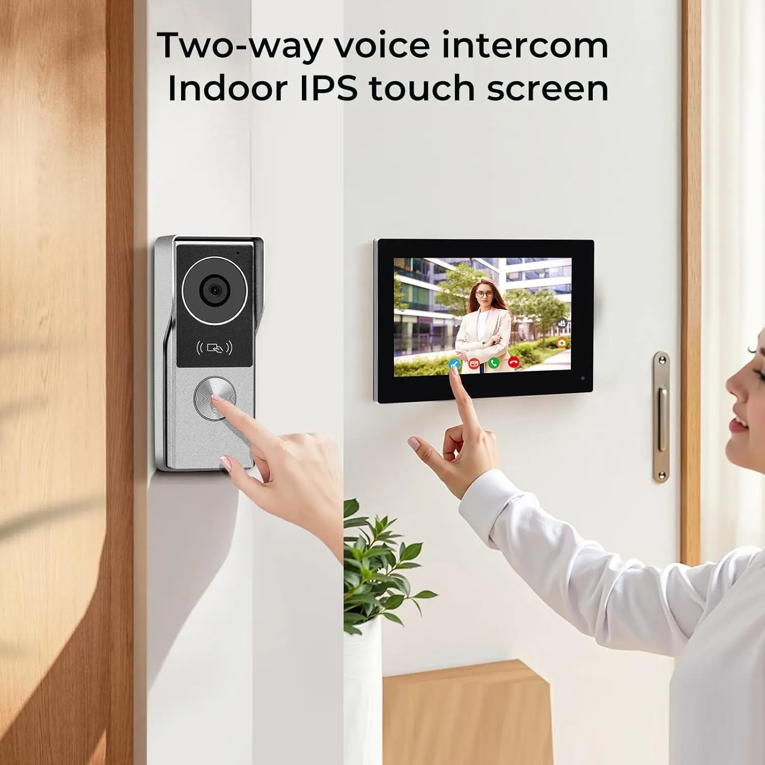 2 Wired Video Intercom System with Dual 7” Touch Screen 1080P HD Camera Tuya APP Remote Control Waterproof for Apartment