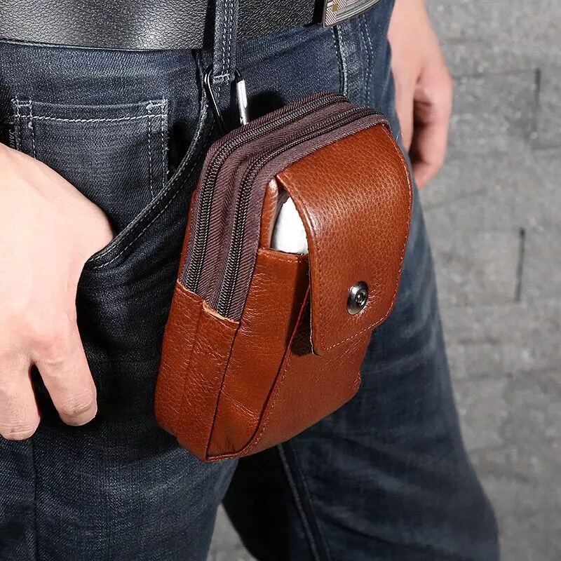 2019 New Multi-functional PU Three-layer Hook Waterproof Shockproof Sports Design Mobile Phone Waist Bag for Iphone Vertical Pack of 2