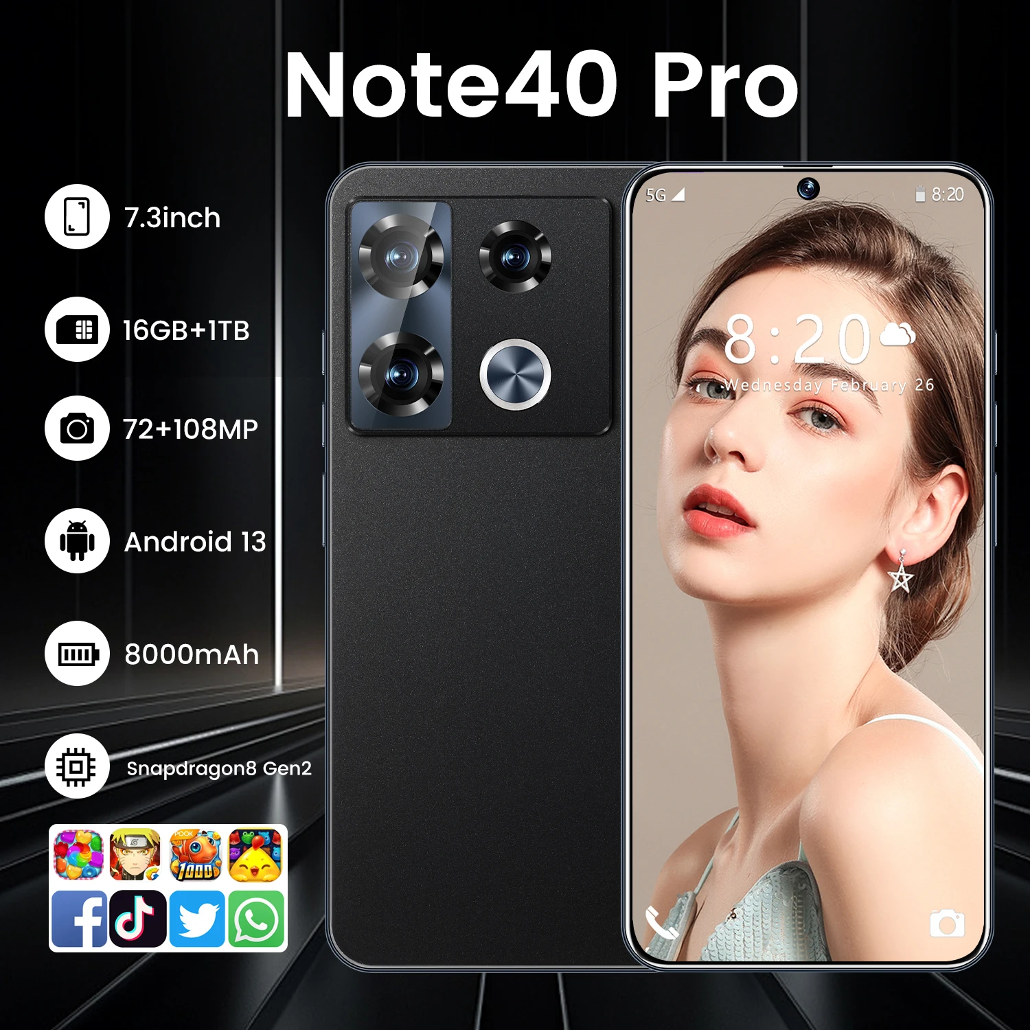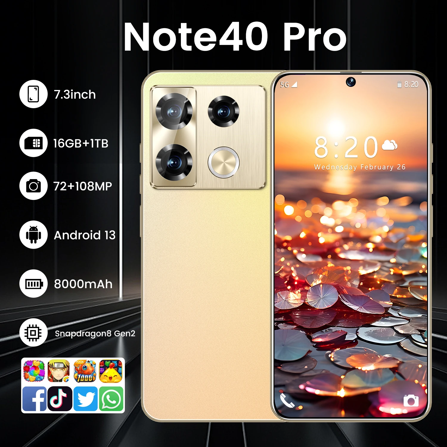 Note40 Pro 16gb+1gb Mobile Phone 5g Smartphone 108MP 7.3Inch 5g Double Sim Card Android 14