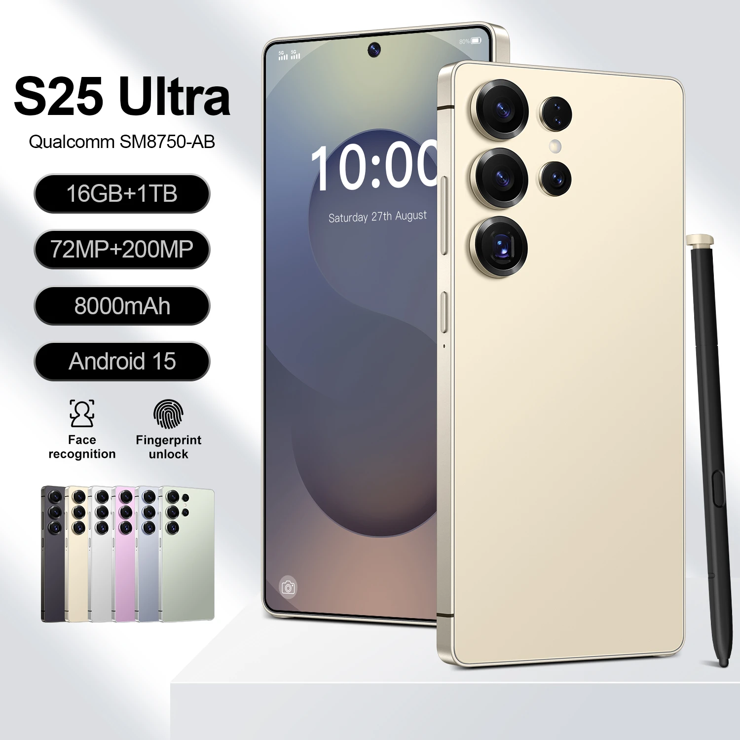 S25 ultra Standby Dual sim dual standby(A slot support SIM card, another slot support SIM card or TF card) Screen 7.3HD+ 2400*3200 Package Included 1 x Smartphone, 1 x Charger Adapter 1 x Headphones, 1 x User Manual 1x phone case 1x Protection film 1x Pen Frequency GSM850/900/1800/1900MHz, 3G: WCDMA850/2100MHz, 4G 5G LTE Colors black white gold blue green pink Multi Function Full screen, Face recognition,Screen finger print, Dual SIM, Wifi, GPS, Gravity Sensor, Alarm ,Calendar ,Calculator ,Audio recorder ,Video recorder, WAP/MMS/GPR, Image viewer,E-Book,World clock,Tasks card rear flash IM