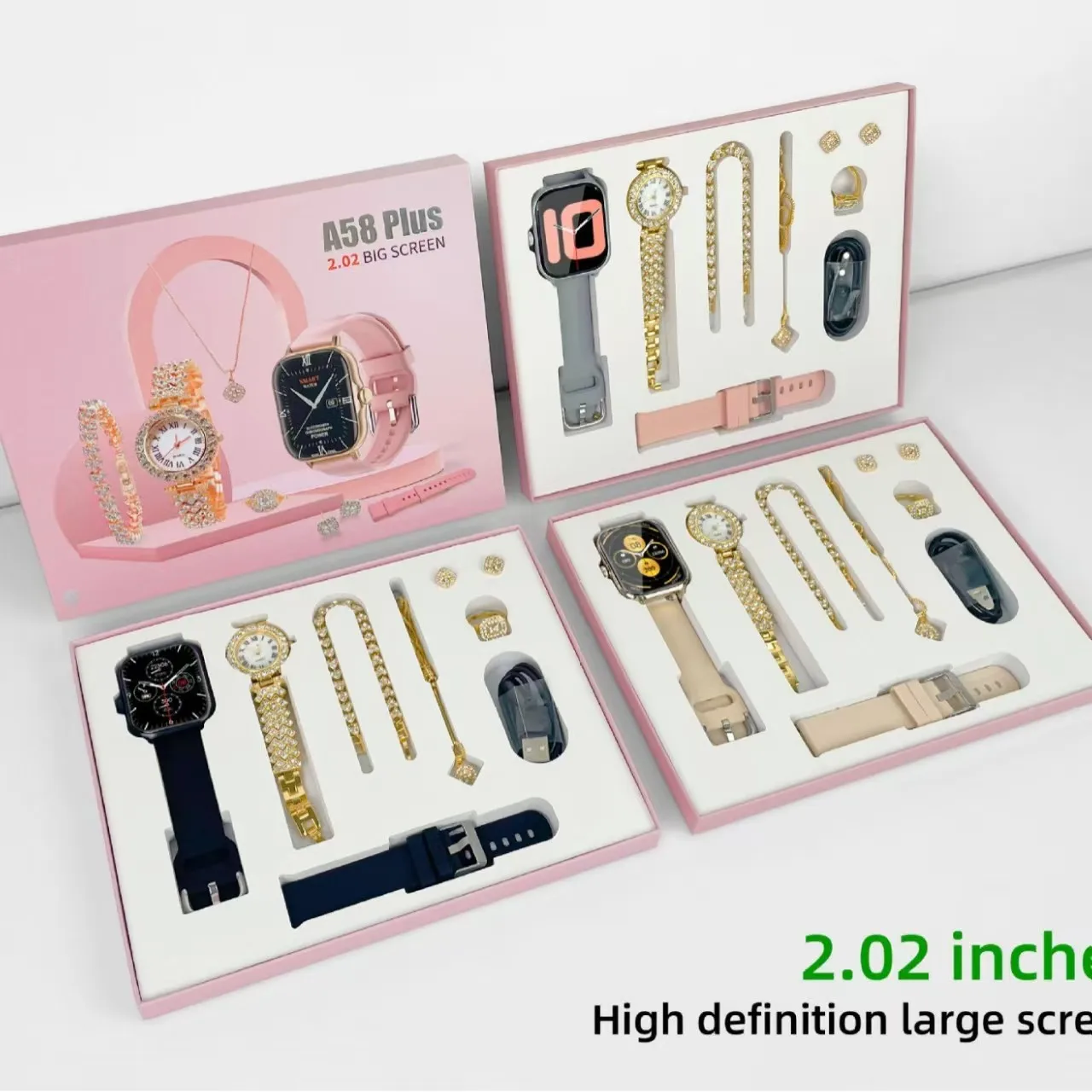 A58 Plus IP67 Android IOS Smart Watch for Women 8-in-1 Fitness Tracker IPS Rubber Christmas/Birthday Gift