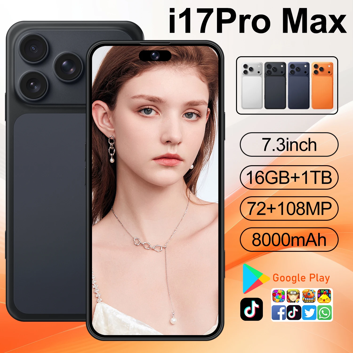 New I17 Pro Max 5G Smartphone 90Hz6.9-inch HD Display 108MP Rear Camera 16GB+1TB Storage Deca-core Snapdragon 800 French