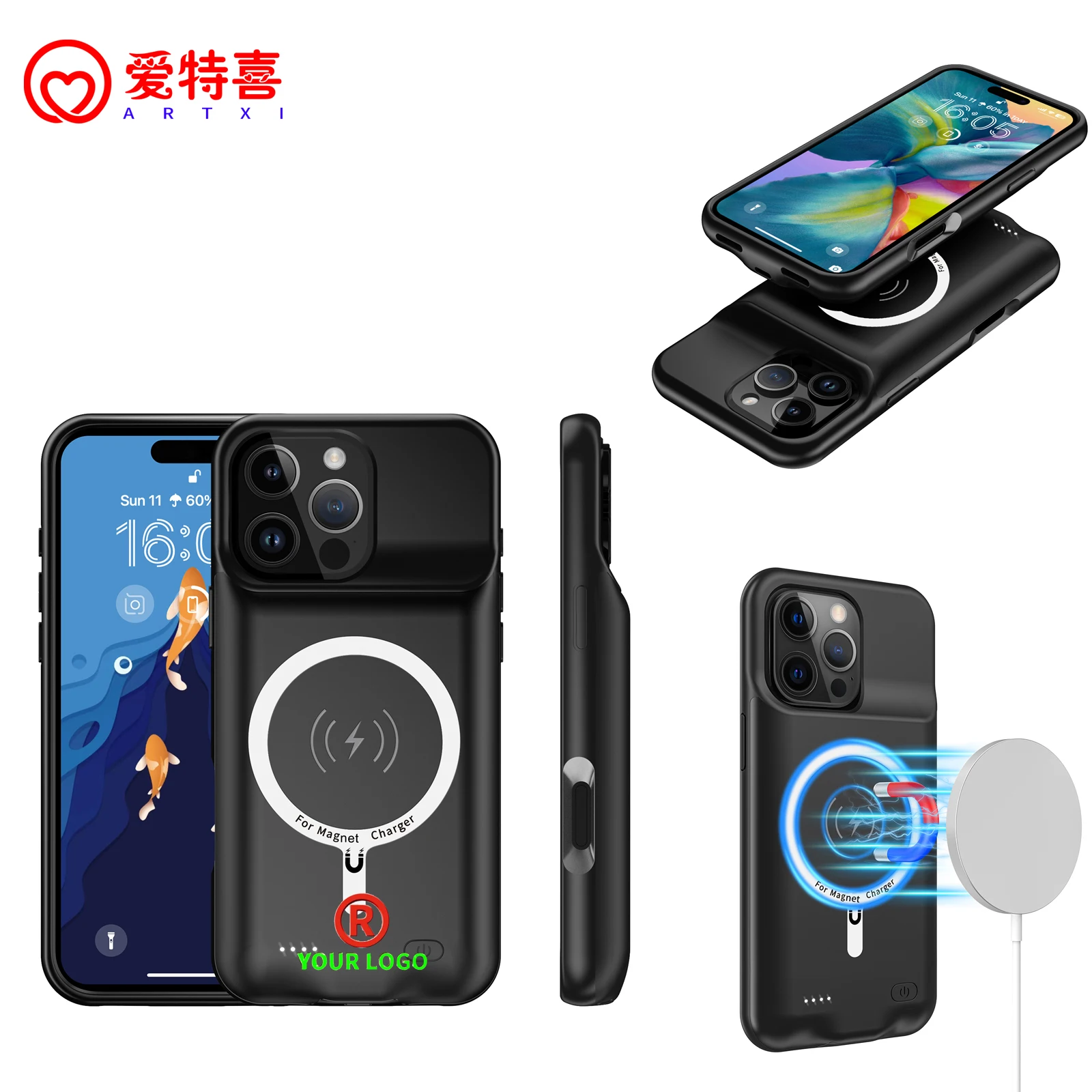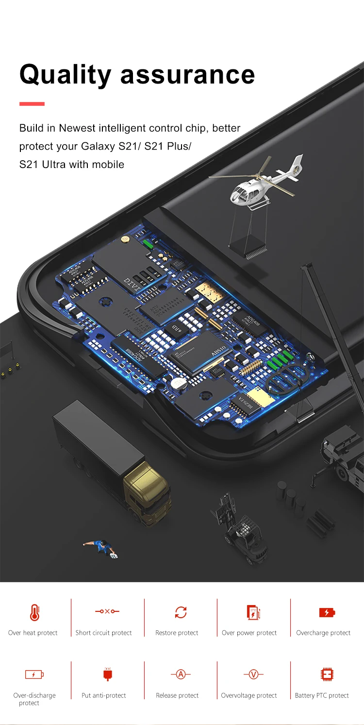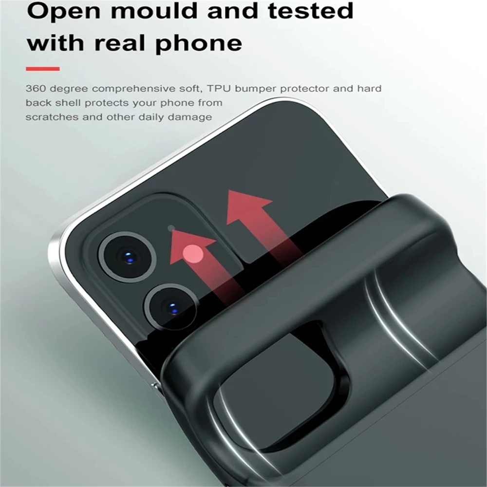 Product performance description Sell Point: 1. Ultra thin 16mm, no adding bulk,wireless Magnetic charging; 2. 4-side protection, camera lens protection; 3. Matte finish, no sweats, no fingerprints; 4. Little bit hard offers excellent grips; 5. 1:1 precise cutouts for ports and buttons; 6. No mould marks. 7. Adopt A high capacitance cell. 2. All-wrapped soft adhesive material with audio function 9. Customized LOGO, gift list and OEM orders are availableWireless Charging Battery Phone Case For iPhone 16 15 14 13 12 Series Quality Control Strictly checked and tested one by one to make sure all products are in good condition before shipping Function Wireless Charging ana Battery Phone Case Colors Black Input 5V/2A Product Usage Recommended by seller 2025 New Products Bracket Wireless Power Bank Battery Case for S23/S24 ultra Portable Charger External Battery Backup Phone case.