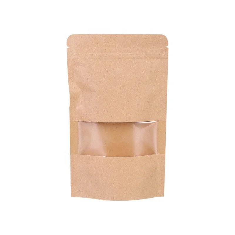 2026 Cheap Price CPP Kraft Moisture Proof Biodegradable Gravure Printing Disposable Stand Pouches Zip Lock Window Food Packaging