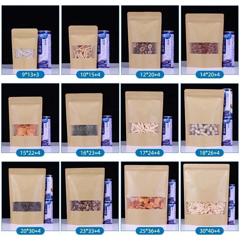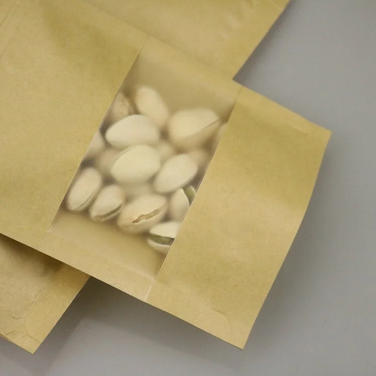 2026 CheapCustom Doypack Ziplock Kraft Paper Bags Brown White Standing up Pouches with Window for Pet Food Packaging