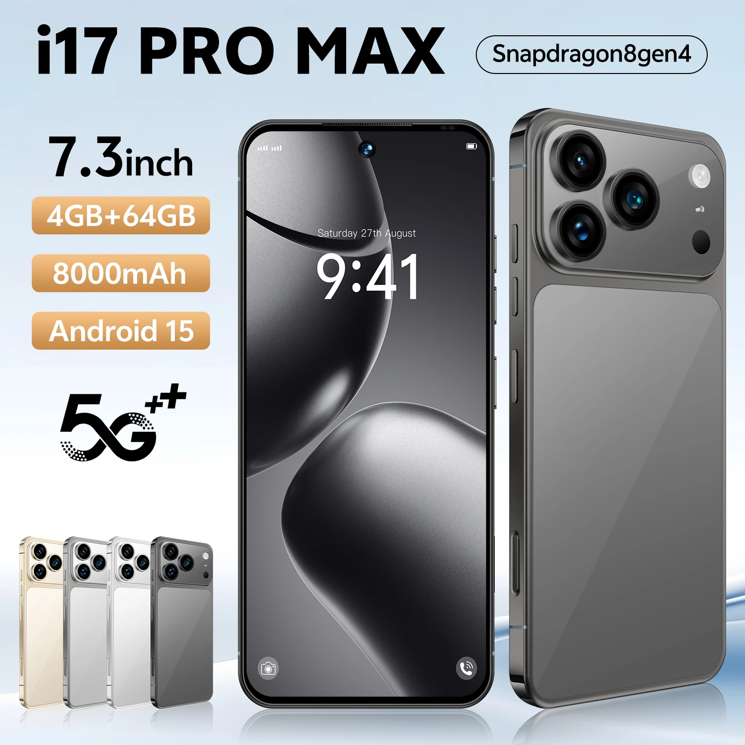 Custom I17 Brand New 17 Pro Max 5G Smartphone 144Hz 7.3 Display 108MP Rear Camera 16GB+1TB Storage Deca Core MTK French