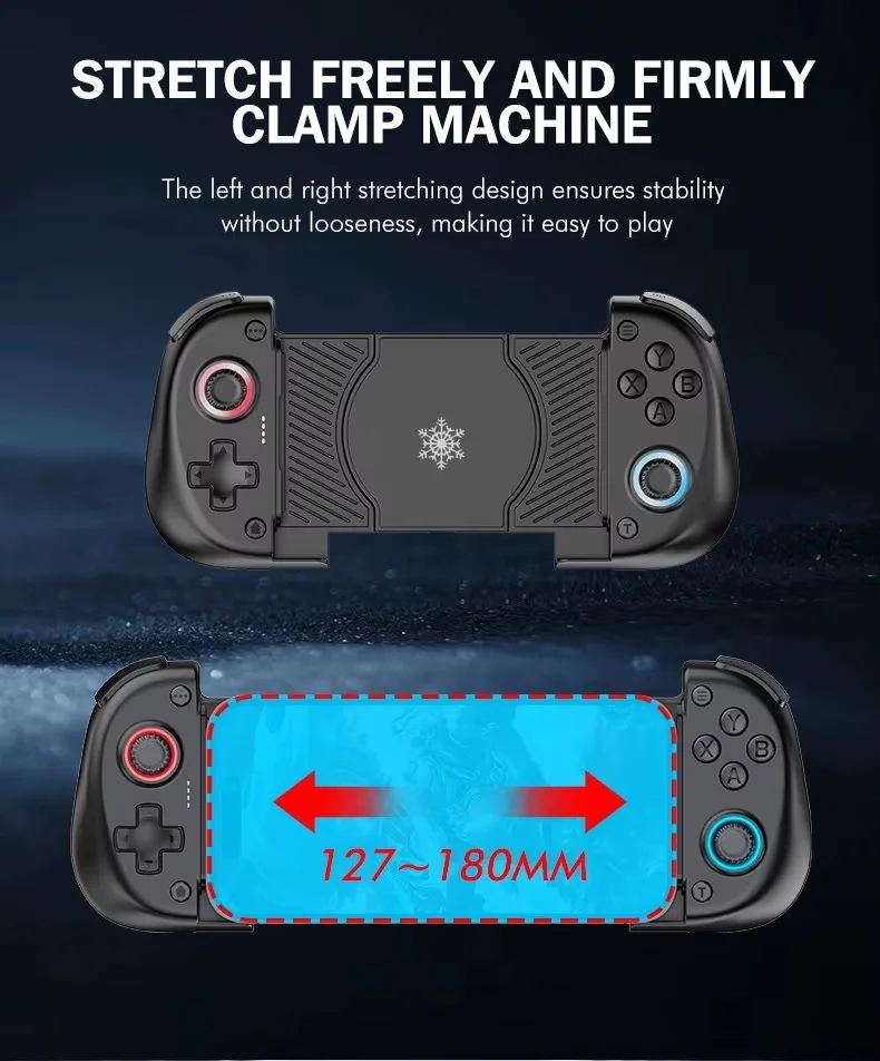 2025 NEW Arrive X5 Mini Wireless Stretching Game Controller Stretch Freely and Firmly Clamp Machine 2.4G Chip BT5.0 Product Discription Key attributes Industry-specific attributes compatible platform For Switch Pro, For Mobile Phone, for others, For Switch, FOR PC, For Steam Deck type Joystick, Mobile Game Controller connection Wireless BT Other attributes feature Sustainable, With Phone Holder, VIBRATION MOTOR, Six-axis gyroscope, TURBO BUTTON, Programmable button, Ergonomic, Linear button, supports the latest version of IOS, Supports IOS private mold NO brand name SUNDI model number X5 mini place of origin Guangdong, ChinaStretch Game Controller Color White, Black, Blue+Red Material ABS Plastic Compatible with Mobile Android/IOS/PC/Switch Connection type 2.4 G Wireless/BT/Wired Battery capacity 370mAh High-efficiency Carp Battery Feature Six-axis Gyroscope, Wireless Keywords Gaming Joystick Gamepad Function Multi Functions OEM/ODM Accepted Packaging and delivery Selling Units: Single item Single package size: 28X26X20 cm Single gross weight: 0.300 kg Product Photos