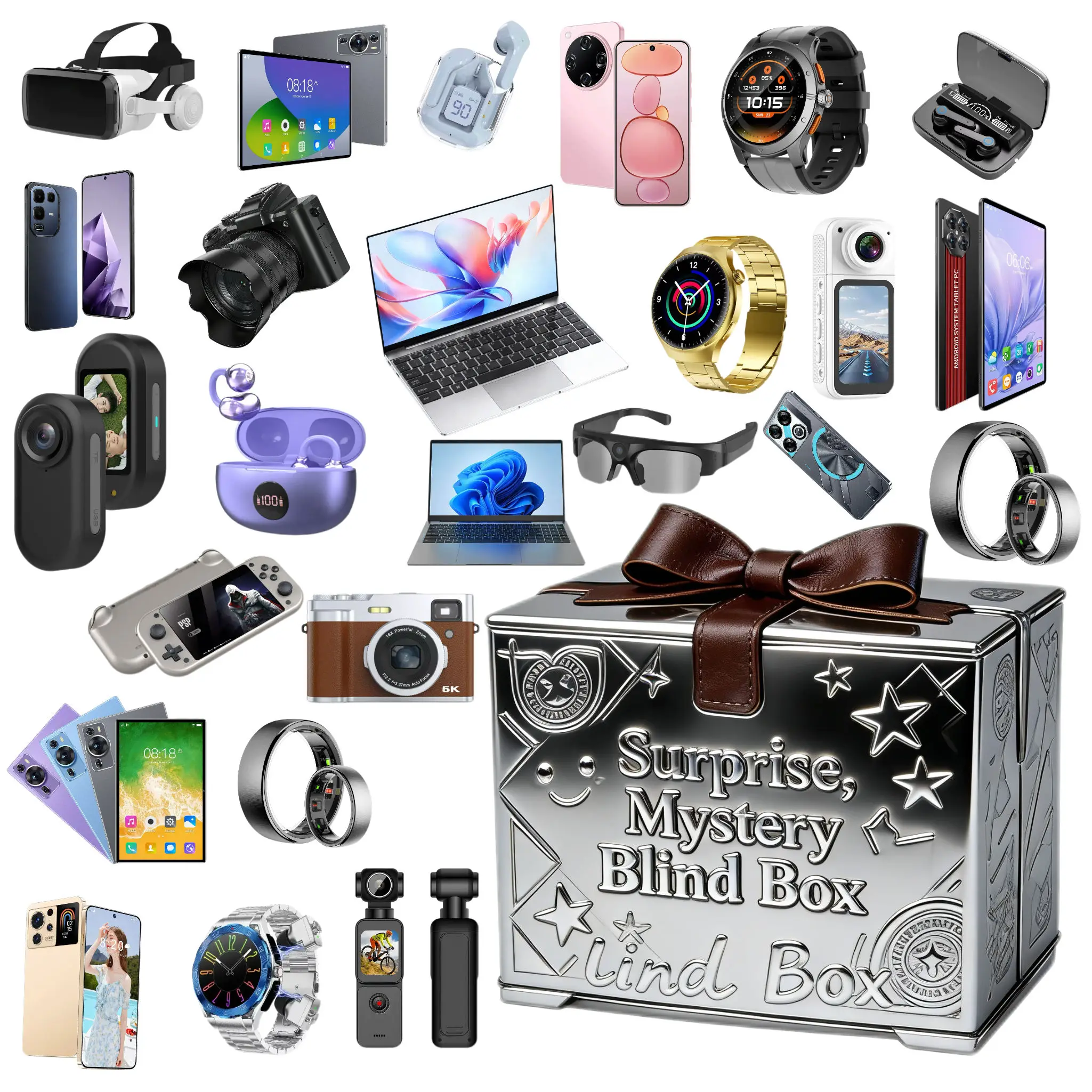 New Top Sale Advanced Digital Mystery Box Surprise 100% Surprising Good Reviews 5 Electronic Gadgets Including Smartwatch