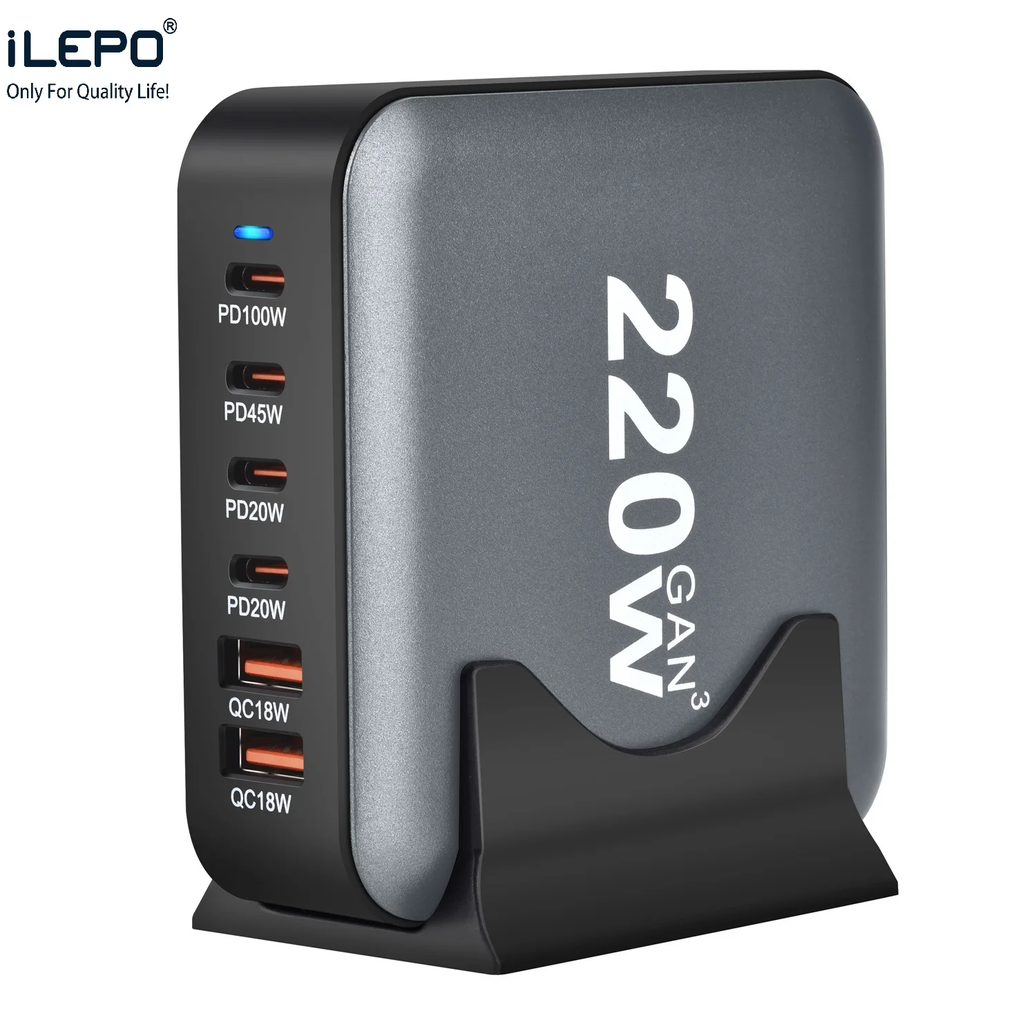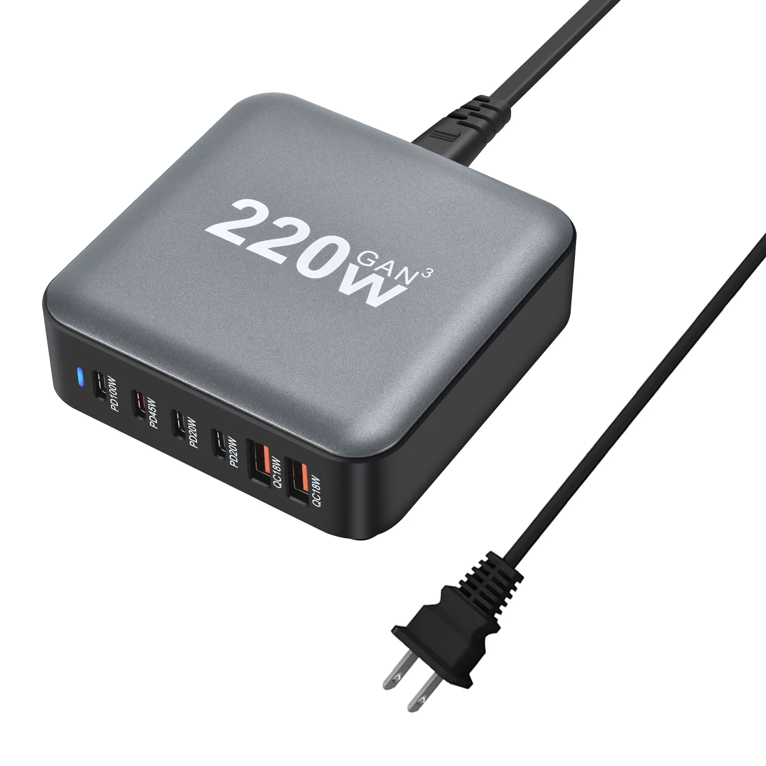 220W GaN 2A+4C Electric Charging Station PD 3.0 Fast for IPh Laptop Earphone Smart Watch Type-C Charging