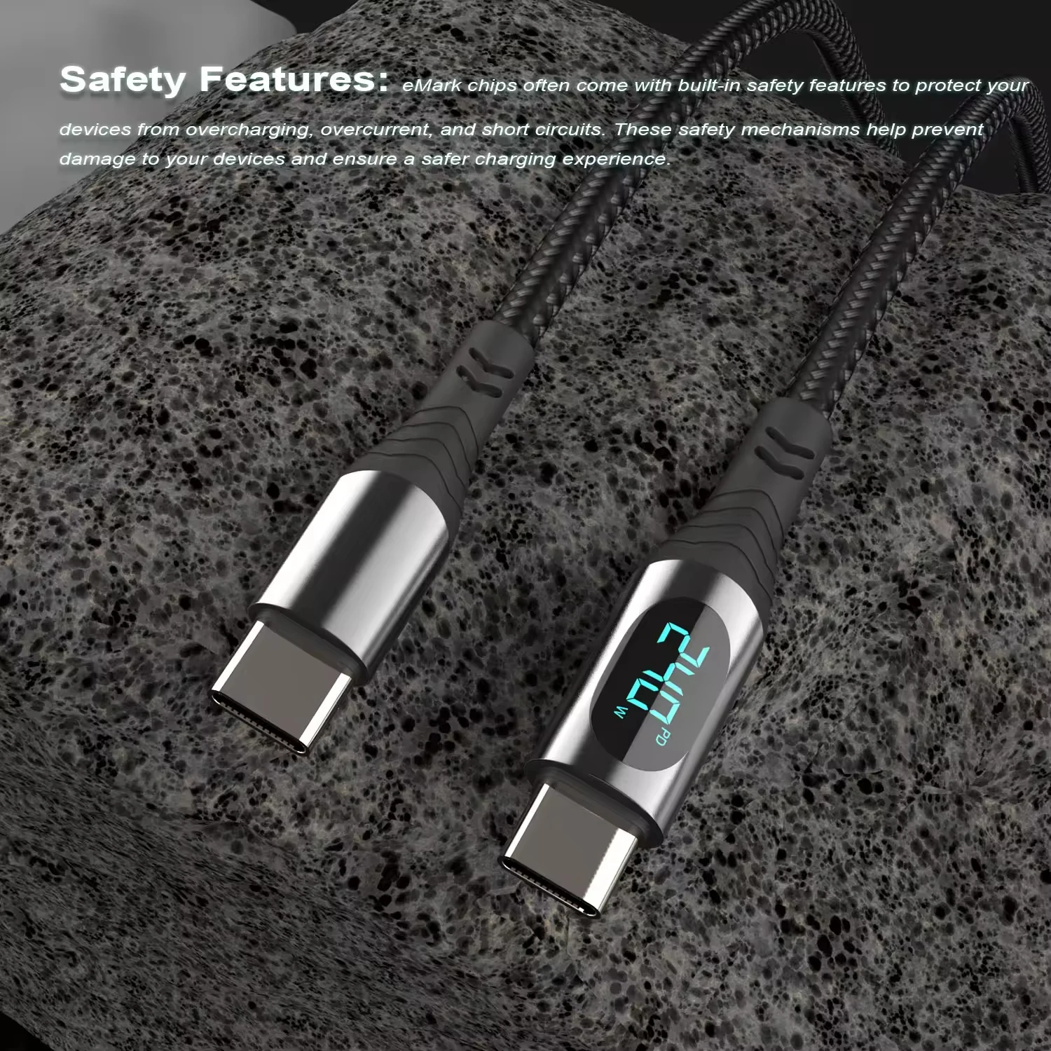 240W 1.2M Pure Copper Nylon Aluminum PD C Fast Charging USB-C Cable with LED Screen Display Smart for iPhone Ready to Ship Pack of 5