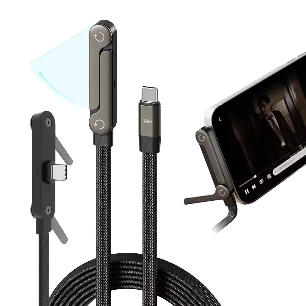 240w Charging Cable With Phone Stand Data Transfer 480Mbps 5A Fast Charging Braided USB C Data Cable with Bracket for Iphone 17