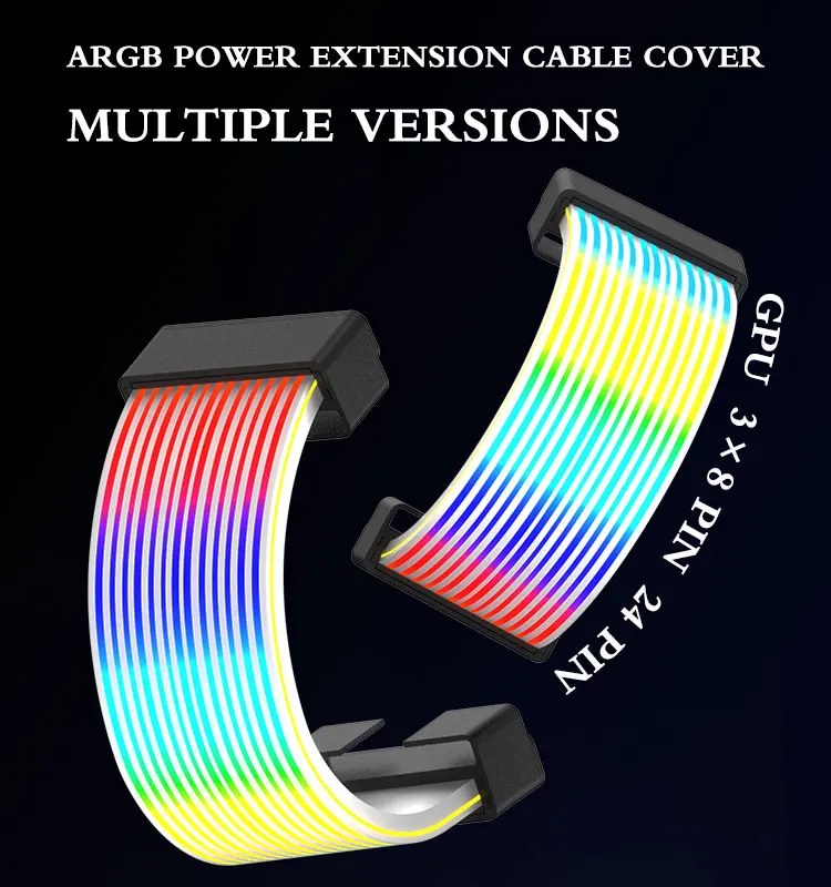 24Pin RGB Cable Extension Sleeved Kit for PC Case 3*8PIN Power Supply Cable with RGB Lighting Laptop Cases & Covers