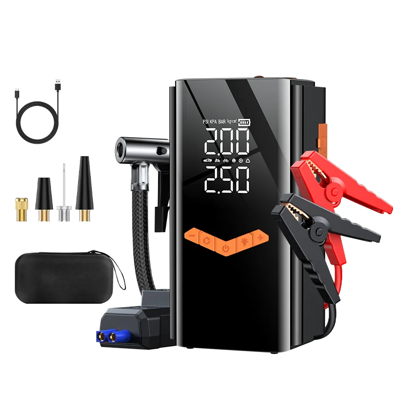 2500A Car Starter Power Supply With Air Compressor,150PSI Car Tire Inflator,Car Battery Charger,Battery Booster Car Jump Starter