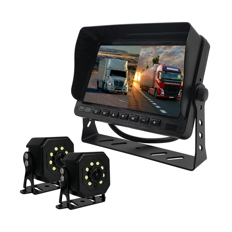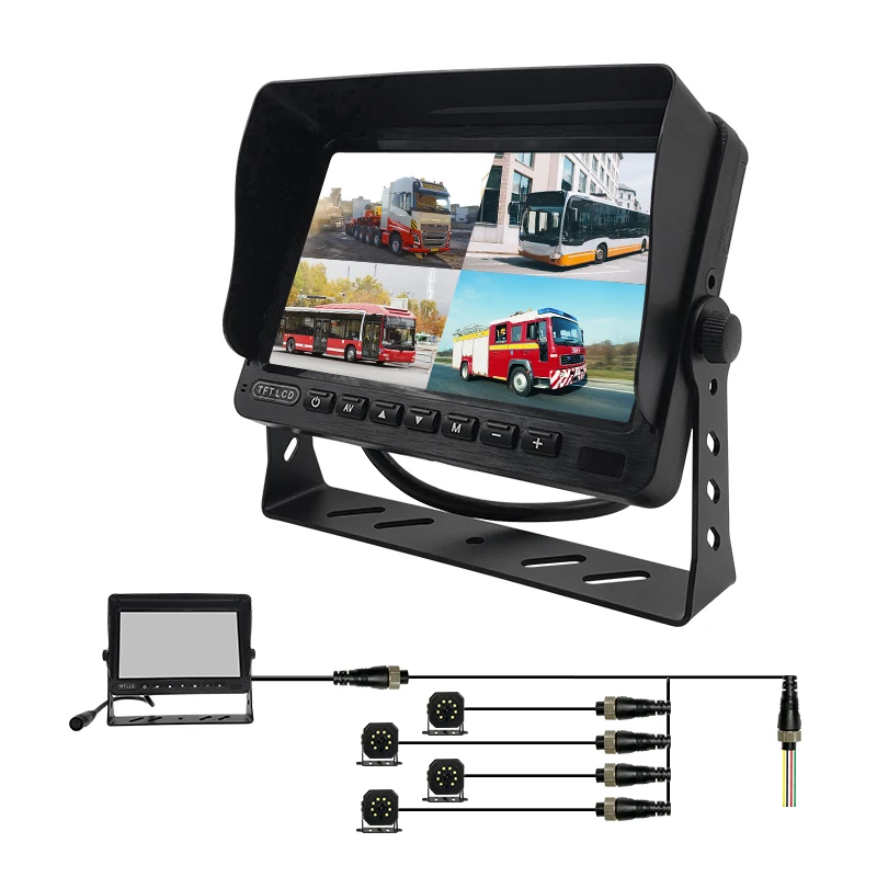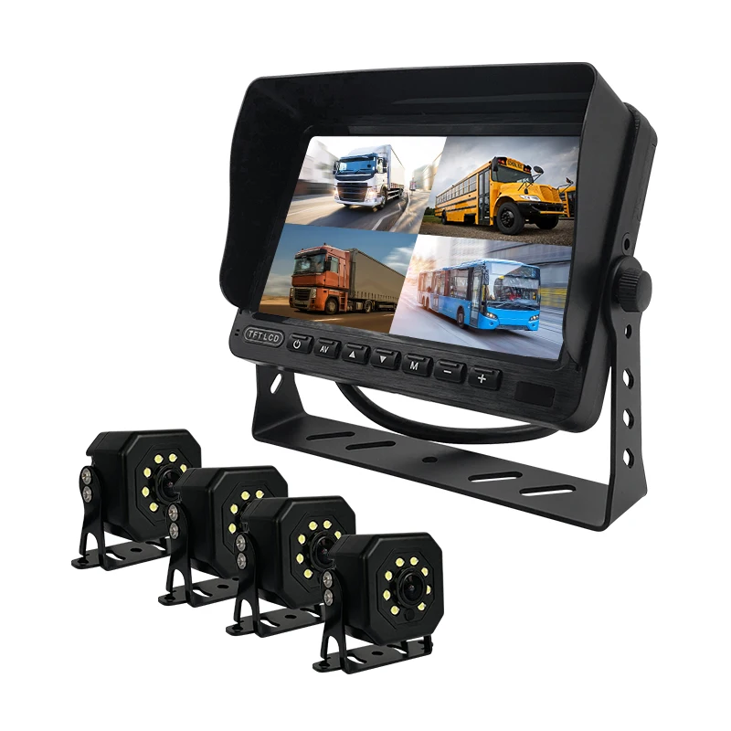 Why Choose Us Company Reception. We specialise in manufacturing and exporting passenger and van security system in-vehicle monitors and in-vehicle cameras, parking sensors and more. Workshop one. The factory was established in 2016, and its products serve retailers, commercial vehicle manufacturers, fleet operators, which include government and enterprises. It is a factory-type enterprise integrating independent R&D, design and production. Warehouse environment. 1. The product is independently developed and produced. Each order can be delivered on time and with good quality; 2. Be able to provide customers with professional and satisfactory OEM services, such as packaging and LOGO design 3. LCL, one-stop logistics service What in-vehicle monitoring displays can we offer you? We can help you create your custom brand * 7 “/9” /10.1 “HD screen * 720p/960p/1080p/CVBS * Support radar integrated machine * Support Video/dual/four/six/eight recording parking monitoring * Video playback, multiple languages are supported * Installation: Butterfly bracket/U-shaped bracket/arm bracket optional * Widely used: suitable for all kinds of large vehicles, forklifts, harvesters, excavators, etc Product Introduction 9V-36V 7 Inch AHD Car LCD Monitor Rear View Heavy Duty RV Forklift Truck Vehicle * 1080P AHD car monitor * 7 inch screen * Wide power supply: DC 9-36V * Supports single-channel / 2-channel video display * Metal mounting bracket (optional) * Multilingual OSD * Suitable for 720P/960P/1080P cameras * Installed on trucks, coaches, trailers, buses Product Paramenters model QD_ 701 describe Aviation head dual 7-inch desktop (diamond button) Product Features High definition/wide voltage/support for camera 12 power supply Application occasions Parking system/reverse imaging function 2-way video display Installation method Desktop bracket control mode Mechanical buttons Reverse trigger Supports 1-way reverse triggering input voltage 9-36V Power consumption 5W viewing angle 180 ° communication interface Aviation head (with 12V output) Screen size seven pixel 1024 * 600 Language display Chinese/English Input signal format AHD720/AHD1080/CVBS Graphic flipping Supports adjustable mirroring brightness 500cd/cm2 Packaging specifications and dimensions 1kg/1pcs Expansion function (unit price separately) Support for video recording/dual/quad monitoring Standard movement. Each product will go through the quality inspection commissioner before packaging and will be protected with foam cotton bag or foam cotton board before encapsulation to ensure the protection of the finished product during transport. Frequently bought together IR 4x Zoom Waterproof Backup Reverse Camera for Truck Trailer School Bus with Night View Function.