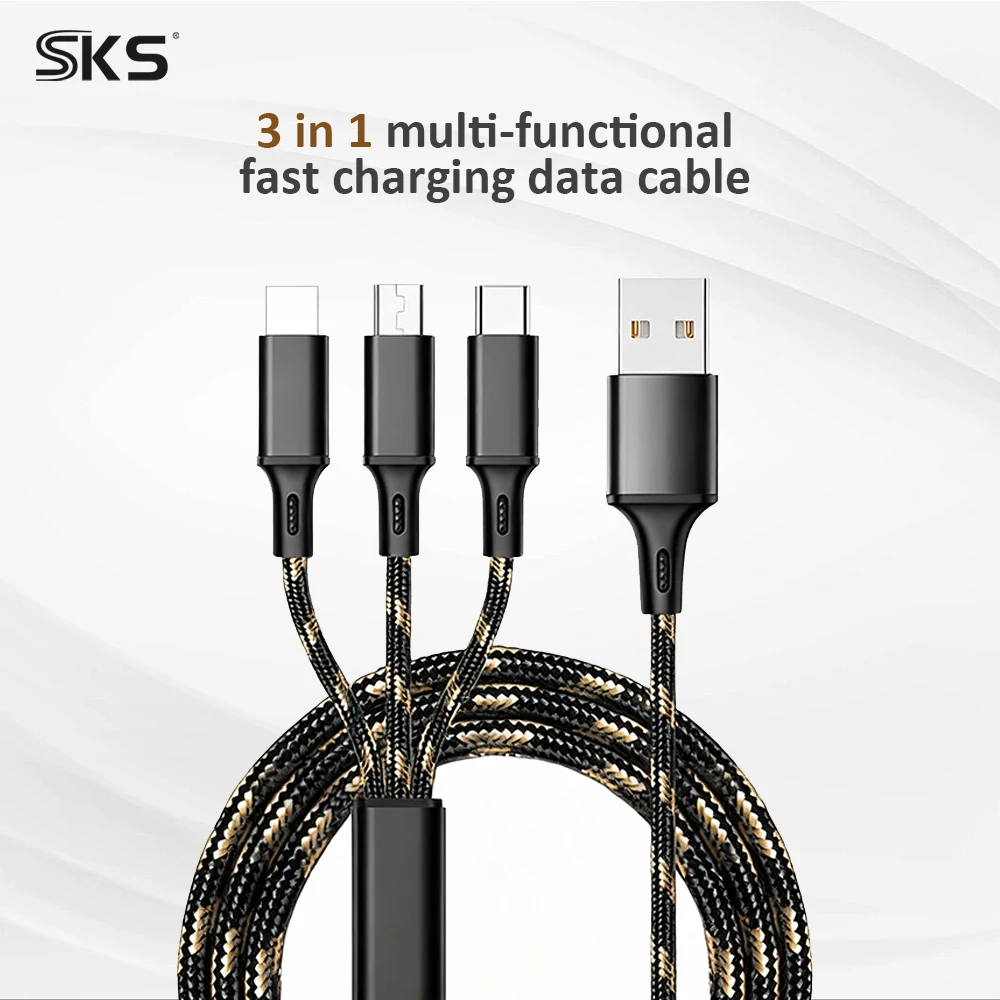 3 in 1 Micro USB Cable Nylon Braided Fast Charging 3A Data Cable 1M 2M Universal iPhone for Android Printer