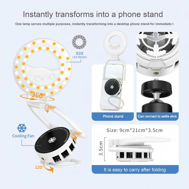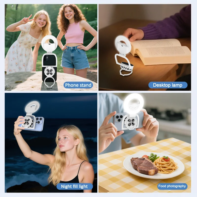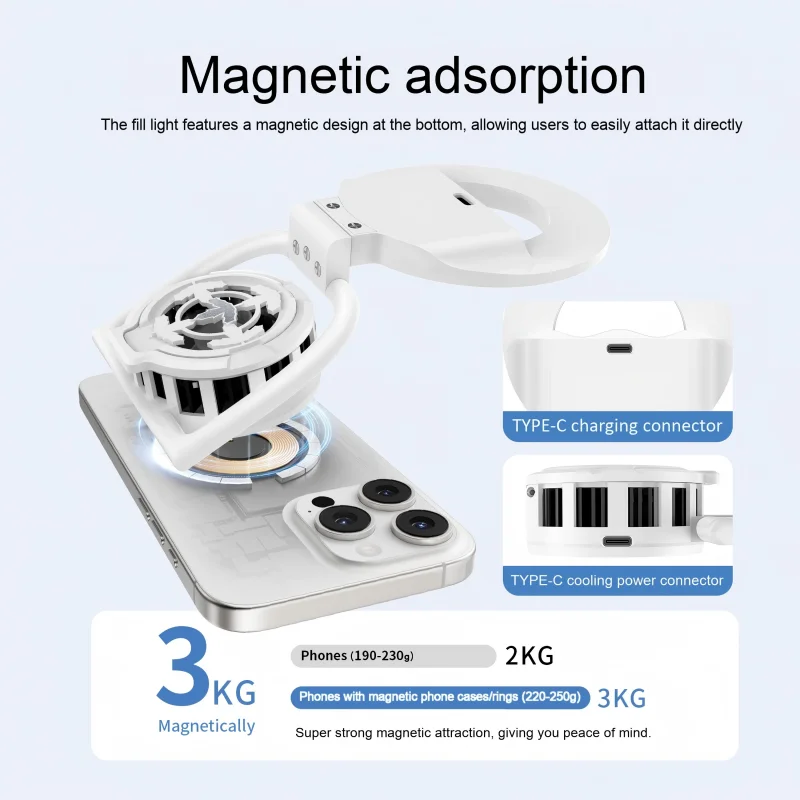 3-in-1 Portable Magnetic LED Fill Light Phone Cooler-Adjustable Color Temperature 10C Cooling Rechargeable Dimmable for Live