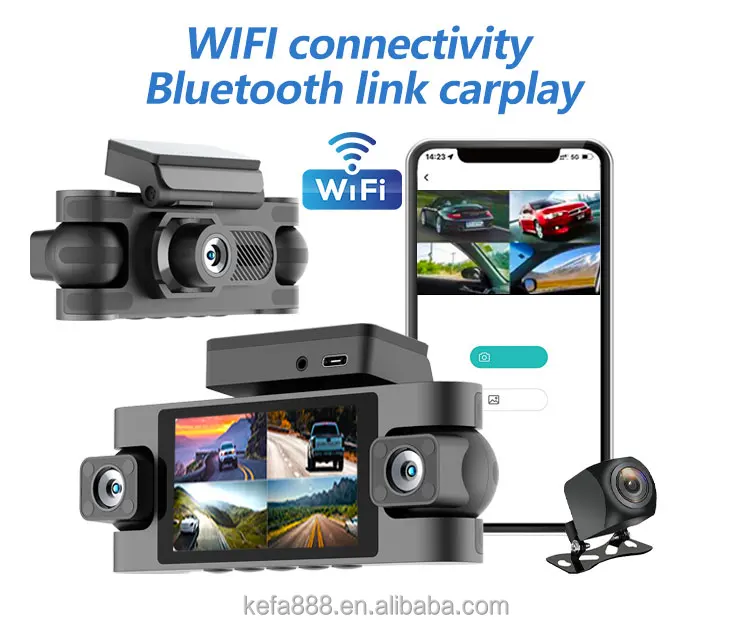 3 Inch IPS Screen Four-lens Vehicle DVR G-sensor Video Recorder Camera Black Car Dash Cam Monitor WiFi Support 4 Lens GPS