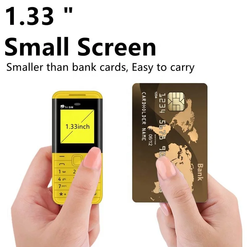 BM5310 Mini Pocket cellphone Material Plastic Communication Bluetooth 500Battery Capacity 380mAh Wireless Range 10M Bluetooth version 3.0 Packing Individual color box Product performance description Mini Pocket Cellphone CPU : MTK6261 RAM :32MB ROM :32MB External Memory :Maximum support 32GB expansion Network type :GSM Frequency :GSM 850/900/1800/1900MHz Bluetoth :3.0 Version Screen size: 1.33 inch SIM Card Slot:(Three SIM,(3 Nano SIM card ) TF card slot :Yes Micro USB Slot :Yes Additional Features :Bluetoth,Alarm, Product size :82.5x 36.5 x 112.4 mm Details Images view more >> Recommended by seller XS15 Supper Mini Smartphone WCDMA 3G Network 2+16GB Quad Core Android Mobile Cell Phone 900mAh Google Play Wifi Cellphone.