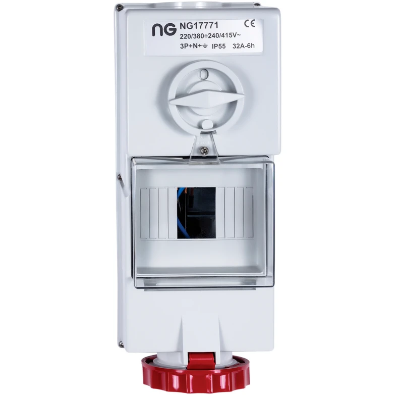 This high quality wall mounted interlocked switch socket is a great choice in any industrial environment. The pre-fitted RCCB provides protection for all equipment connected to it. With an IP65/67 rating (Enclosure IP65/IP67 Socket), this socket is perfect for use in hazardous or wet environments. · · · Material Composition Polycarbonate Housing · · Amps 32A · · Volts 415V · · Pin Configuration 3 p + E + N