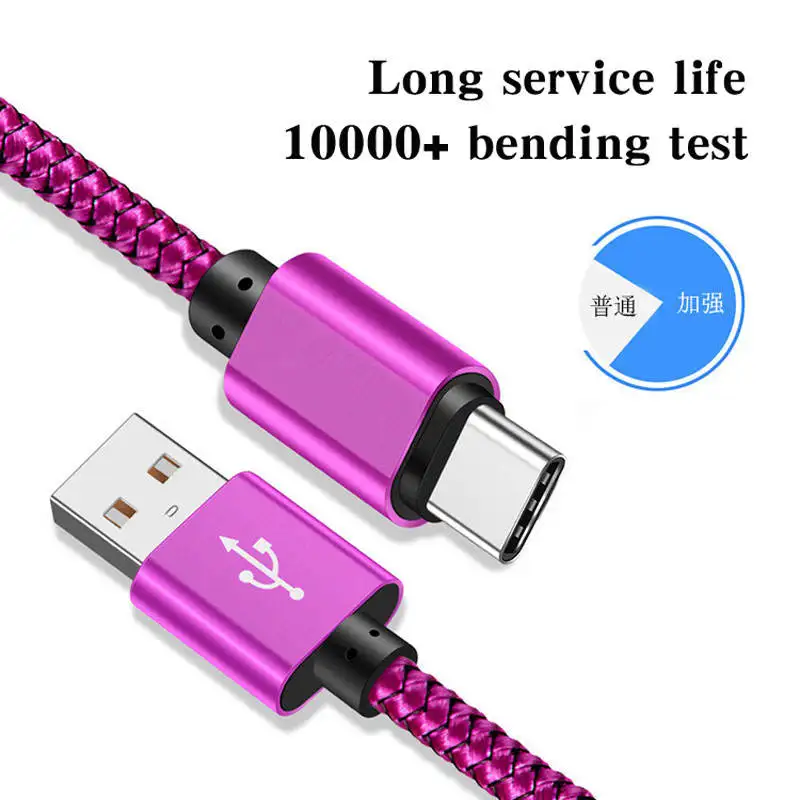 3A USB to Type-C Fast Charging Cable Data Transfer for Cameras Nylon TPE PVC Jacket Braid Shielding Pack of 100