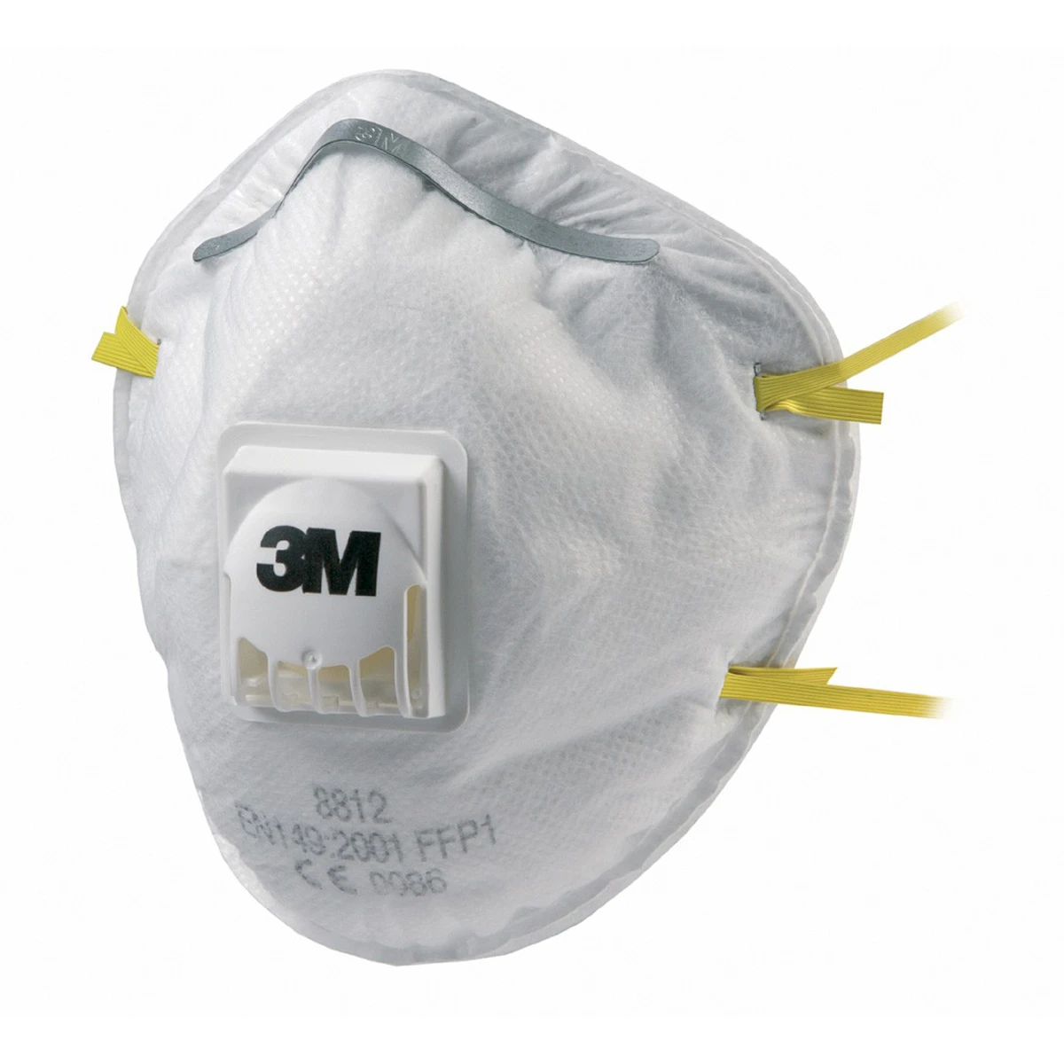 3M cup shaped valved disposable particulate respirator is designed to help provide a comfortable and reliable worker respiratory protection against certain non-oil based particles. · · · Respiratory protection against fine dusts · · Standard: EN149: 2001 + A1: 2009 FFP1 · · Maximum use level Assigned Protection Factor: 4 x OEL Nominal Protection Factor: 4 x OEL · · Robust collapse-resistant shell that moulds easily to most face shapes and sizes · · 3M Cool Flow Valve reduces heat build-up inside the respirator giving cooler and more comfortable wear · · Adjustable nose clip helps to form a seal across the nose and cheeks · · FFP1 (Filtering Face Piece – Class 1) provides protection against low level, non-hazardous dusts and oil or water based mists, typically found during hand sanding and basic DIY activities · · CE Approved · · This product helps protect against certain particles in concentrations up to 4 x Workplace Exposure Limit (WEL)