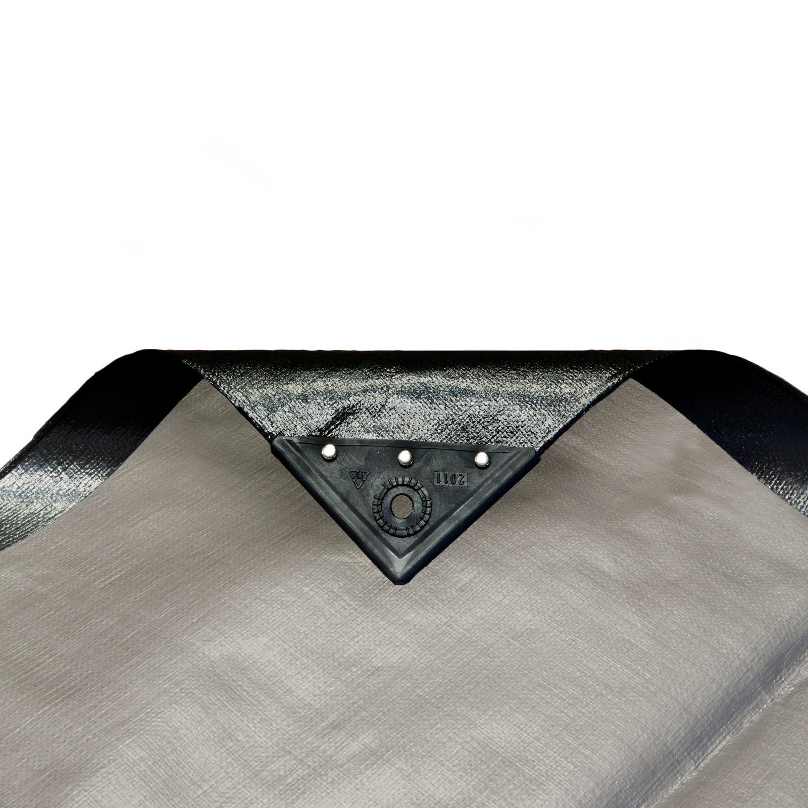 Heavy Duty 270gsm silver and black tarpaulin. Ideal for long term waterproof cover work, offering a combination of extra strength and durability, making it the perfect choice for long term weather protection. Textarp Heavy Duty silver and black tarpaulins are widely used throughout the construction and agricultural industries.Textarp Heavy Duty tarpaulins feature a cord reinforced hem with eyelets at half metre intervals and are available as a silver and black coloured tarpaulin. · · · 16 x 16 dense weave construction · · Cord reinforced hems · · Eyelets every 0.5m and plastic reinforced corner tabs · · Waterproof and dimensionally stable