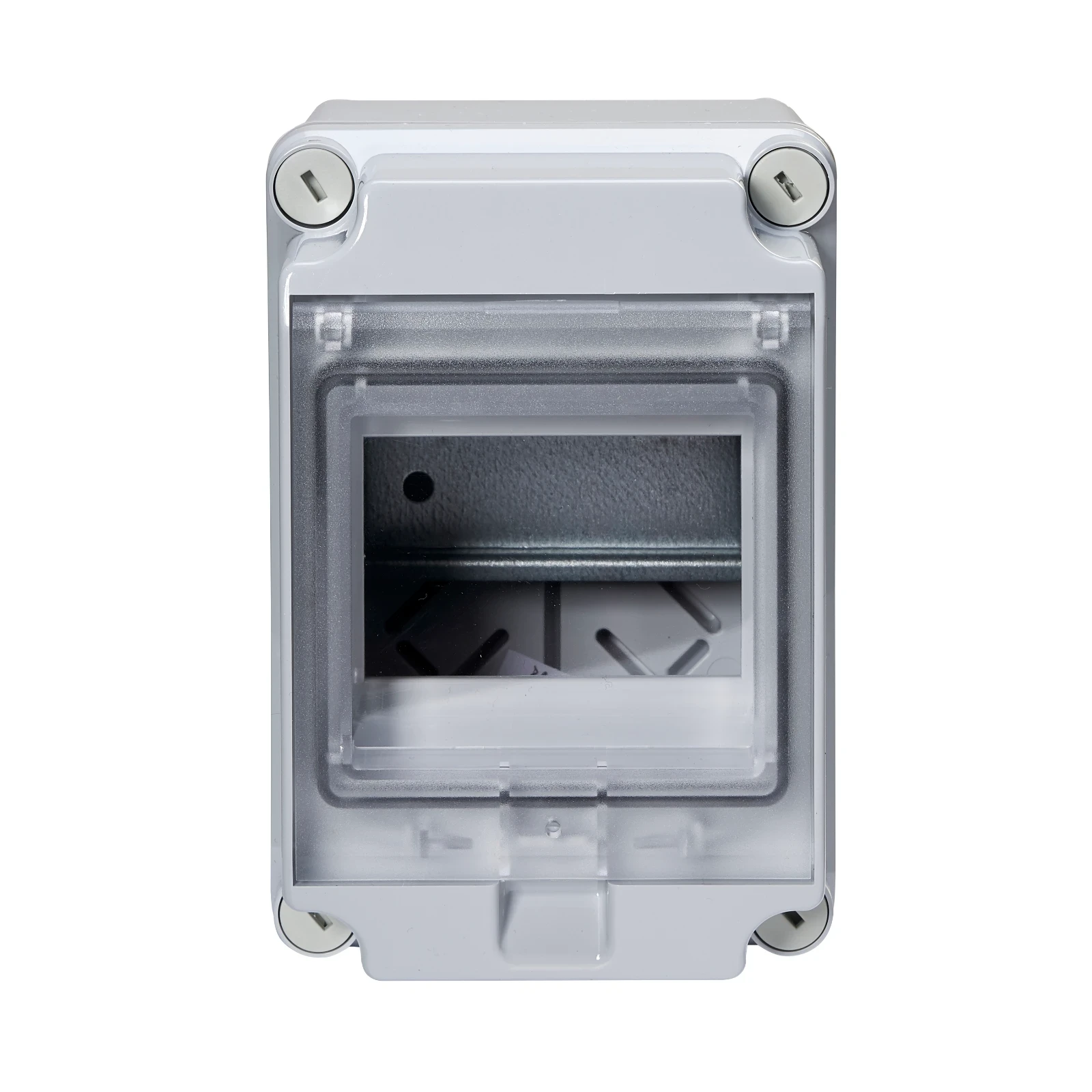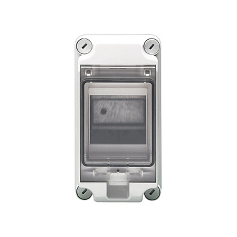A 4 Module Circuit Breaker Enclosure features sealable cover and hinged protective cover. · · · Insulated enclosure · · 4 Module · · Includes full DIN rail · · Sealable cover and hinged protective cover · · IP65 · · 4 module
