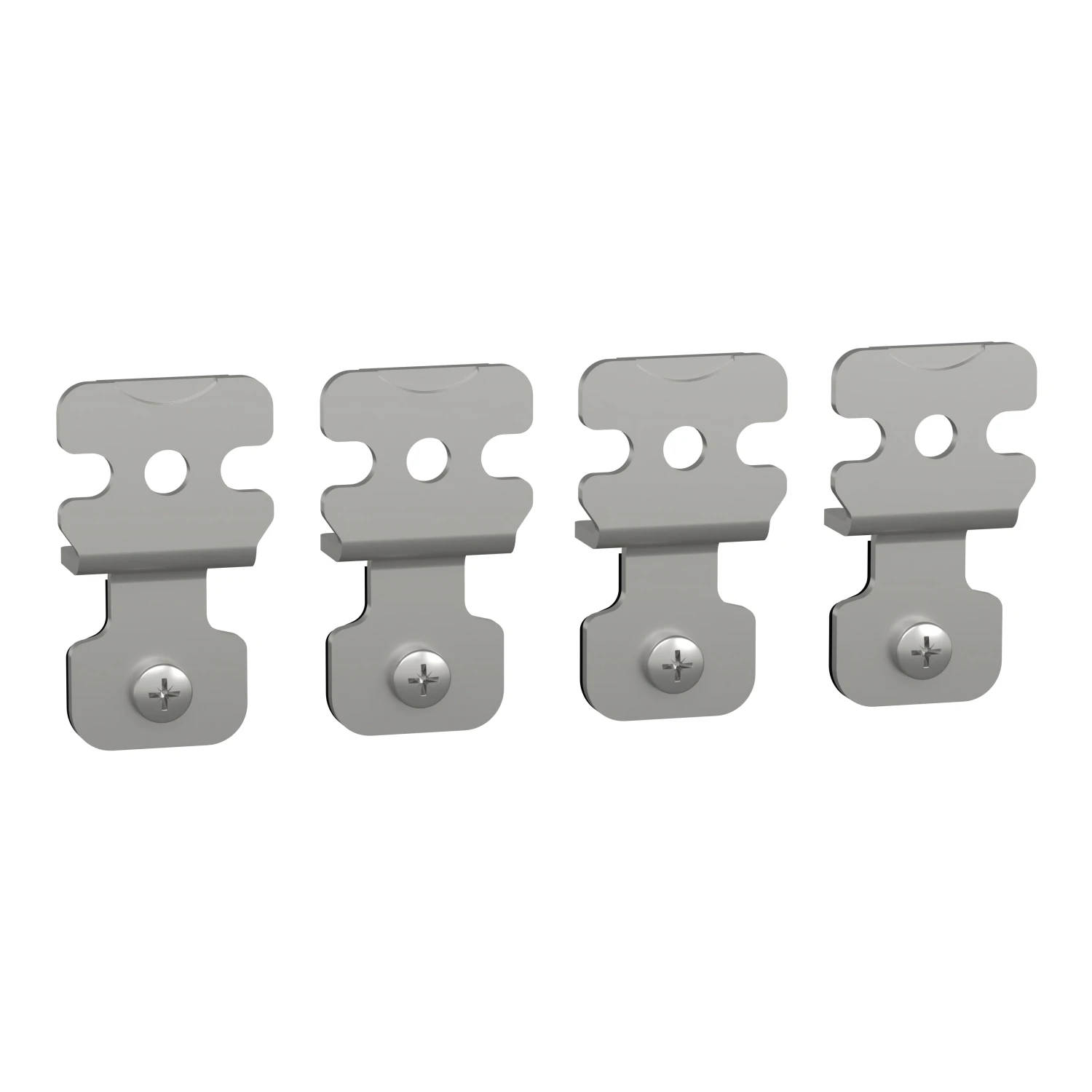 4 wall fixing brackets in stainless steel AISI 304 for Spacial S3X. range: Spacial – accessory / separate part category: fixing accessory – device application: multi-purpose – mounting location: rear of enclosure – installation accessory type: horizontal or vertical position – range compatibility: Spacial CRN, Spacial S3X – device composition: 4 x lug, 4 x pre-mounted sealing gasket, fixing screws – quantity per set: set of 1. · · · Material: stainless steel 304 · · Range: Spacial · · Finish: zinc coated