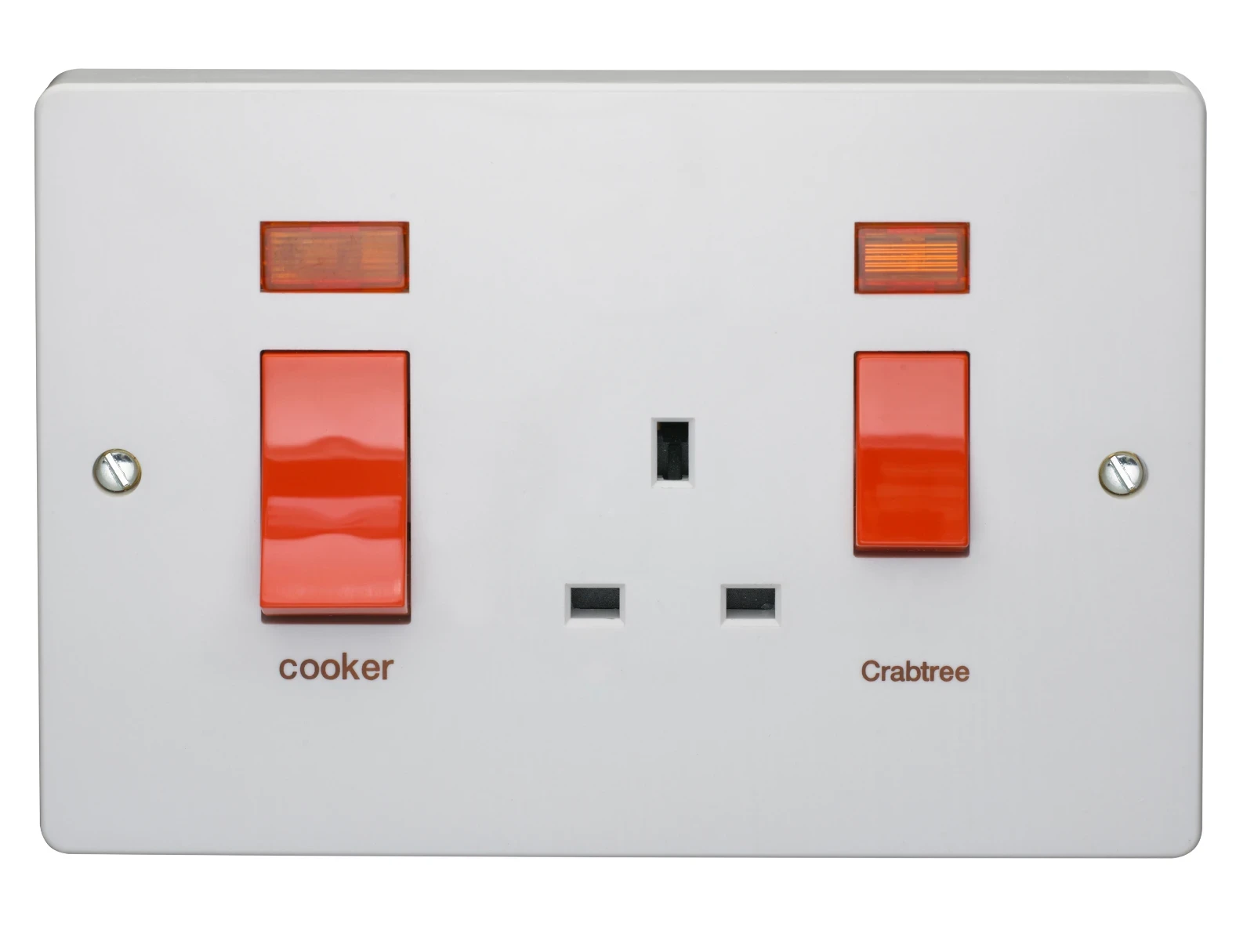 The installation of cooker switches or cooker control units is a useful alternative to the electrical installation of a cooking appliance via a plug and socket outlet. For cooker switches, electrical installations must comply with BS EN 60669-1+A2, and for cooker control units it is BS 4177. · · · Double Pole Switching · · Neon Indicator · · Safety Shutter System · · IP rating is IP2X · · Tested to 250 Volt · · Crabtree 45A Cooker Control unit are all type tested to BS 4177 & BS 1363-2 · · Terminal capacity: 2 x 6mm2, 1 x 10mm2 or 1 x 16mm2 · · Orange Neon Indicator