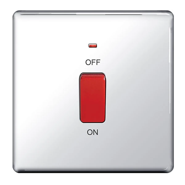 45A Polished Chrome Single Plate Double Pole Switch With Power Indicator
