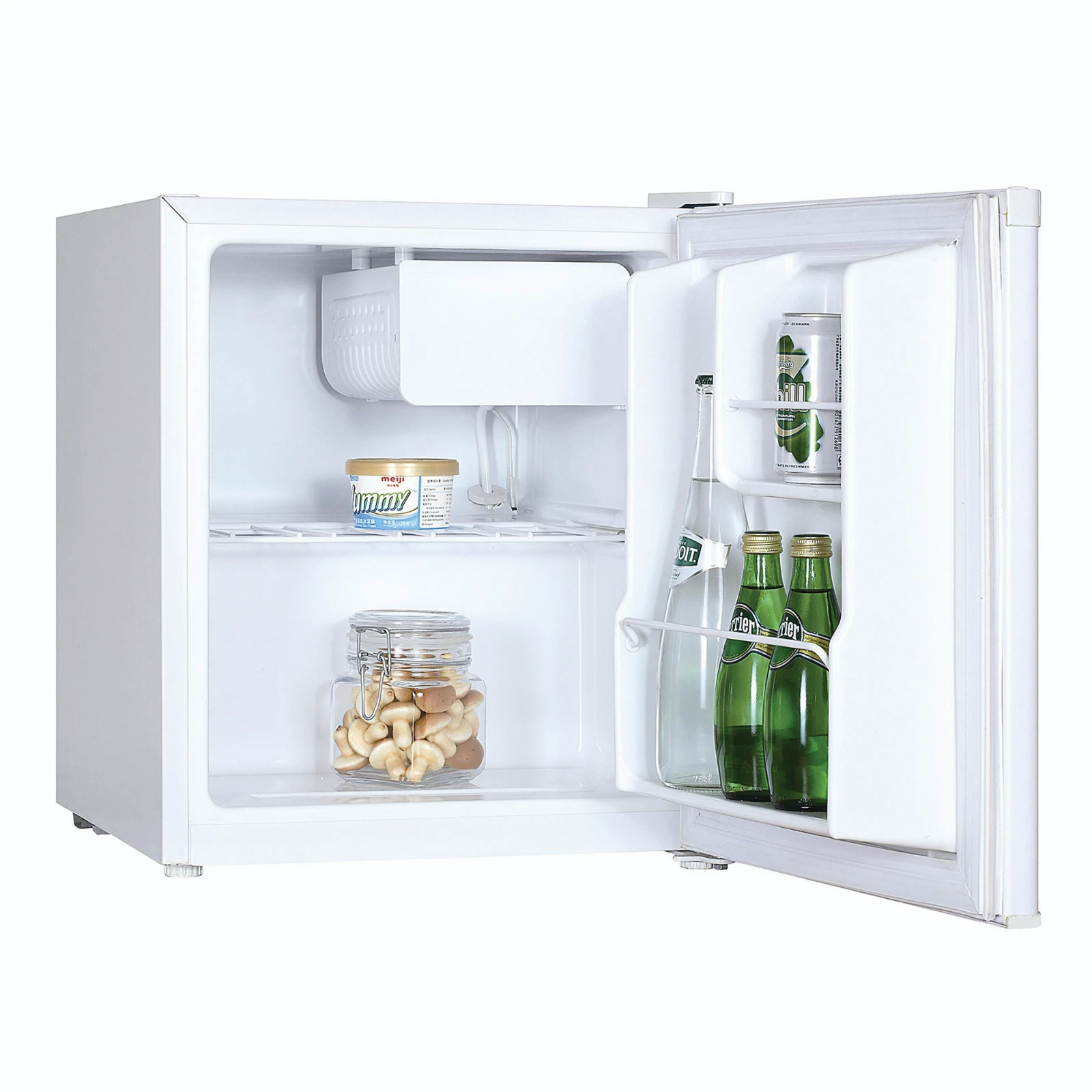 Miniature fridge measuring at 1.62 cubic feet is an ideal solution for any and all cooling or freezing applications around the canteen/kitchen environment. Designed to be installed for ready access on a countertop but due to it’s 46 litre capacity it can be installed in many places with little space to spare. · · · Reversible door · · Wire shelf and wire rack included · · Freezer compartment included · · Chill compartment · · Energy Consumption: 110 kWh/year · · Noise Level: 41 dB(A)