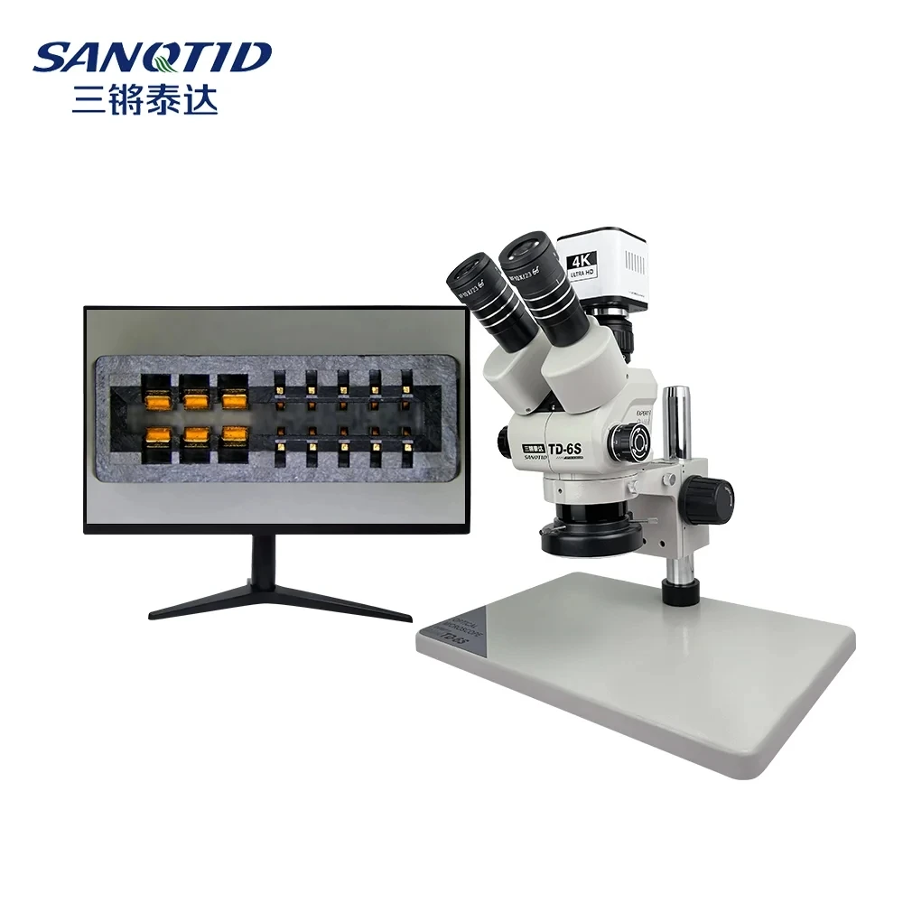 4K Imaging Trinocular Microscope Continuous Magnification LED Illumination 0.001MM Accuracy 5d Dioptric Adjustment for PCB