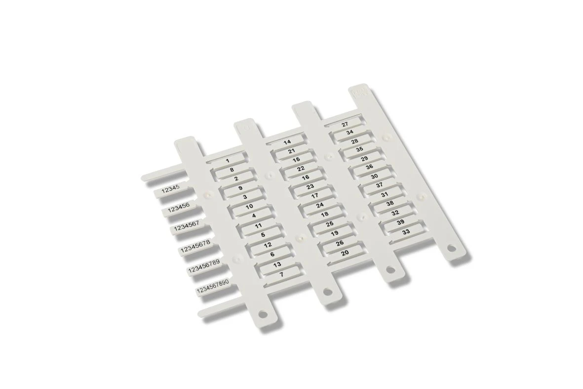 Technical Specifications Technical Specifications Labelling material Text Unprinted Colour White Height 0.4 mm Width 4 mm Diameter – mm Transparent No Length 15 mm Self-adhesive No Magnetic No · Technical Data Sheet – Click to Download
