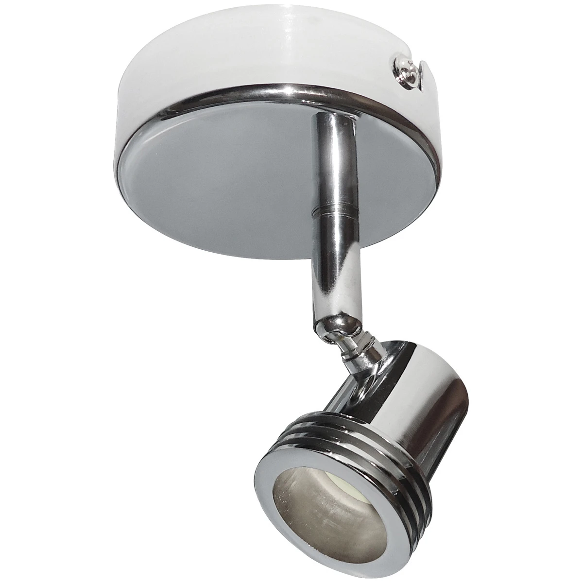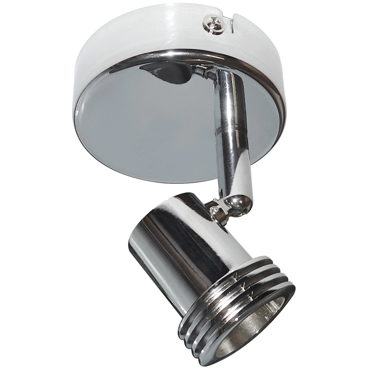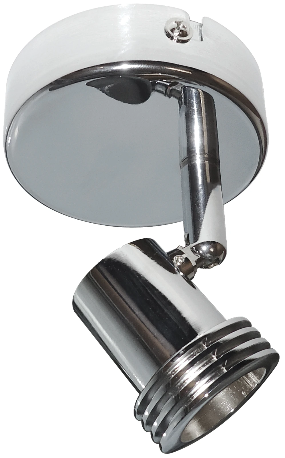 Polished chrome 50W Max GU10 single spotlight · · · spotlight, GU10, display, wall · · Pressed steel base · · Fully adjustable cast alloy head · · Circular concealed fixing plate