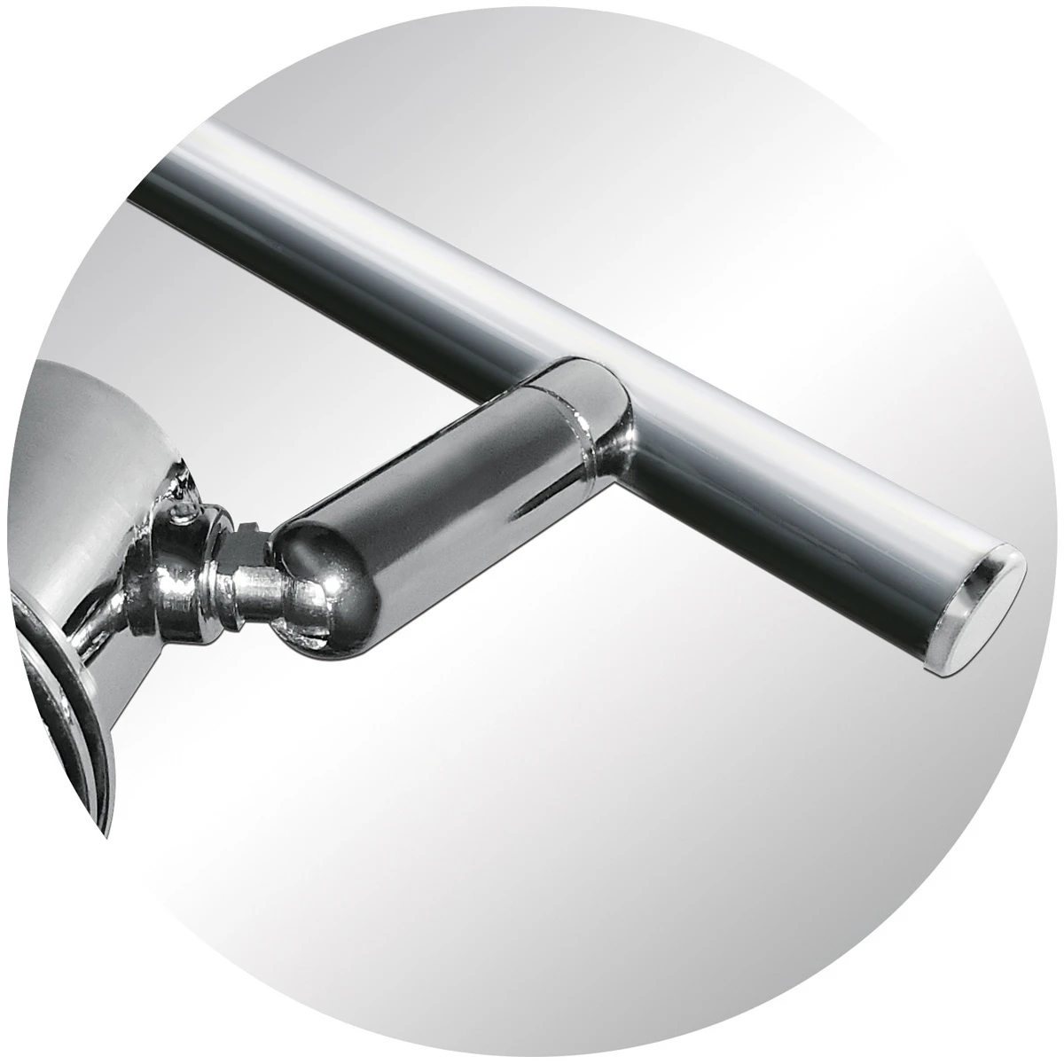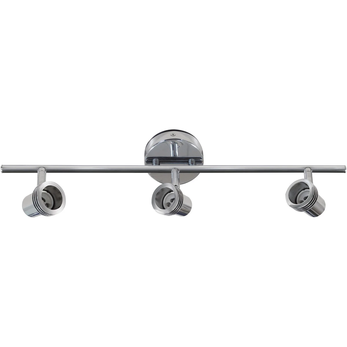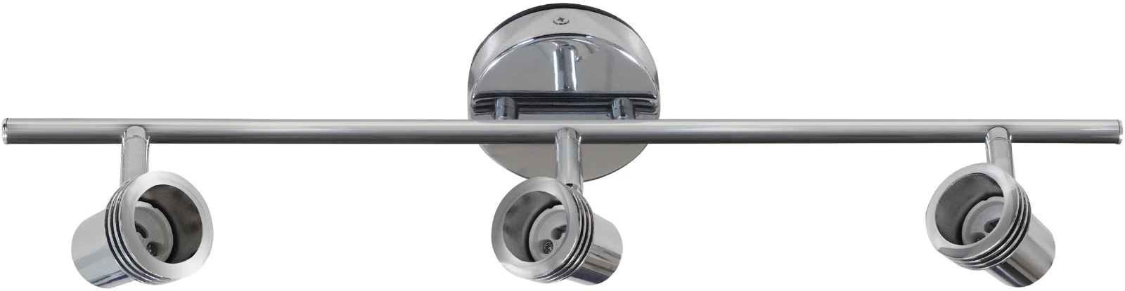Polished chrome 50W Max (per lampholder) GU10 triple bar spotlight · · · spotlight, GU10, display, wall, bar · · Fully adjustable cast alloy head · · Circular concealed fixing plate
