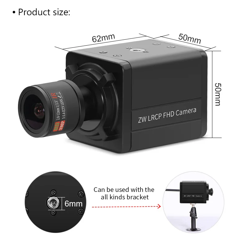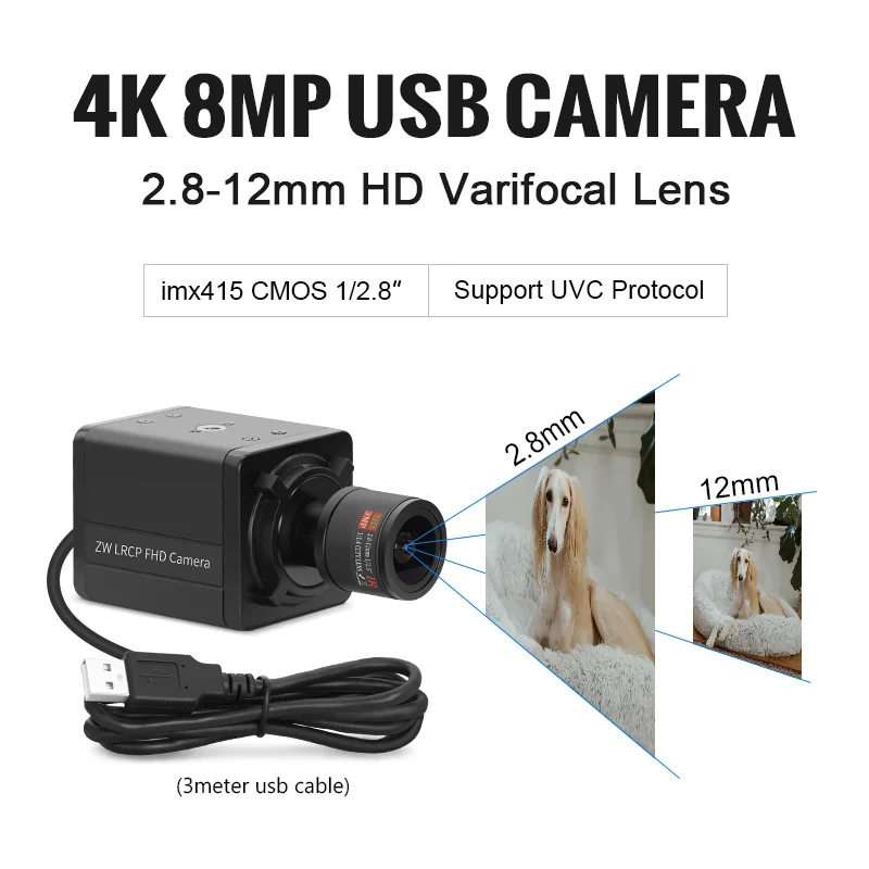 5600 8MP M12 Varifocal 2.8-12mm Lens USB Camera 3840×2160 30fps UVC CMOS Imx415 1/2.8″ Sensor Mini 4K Video Conference